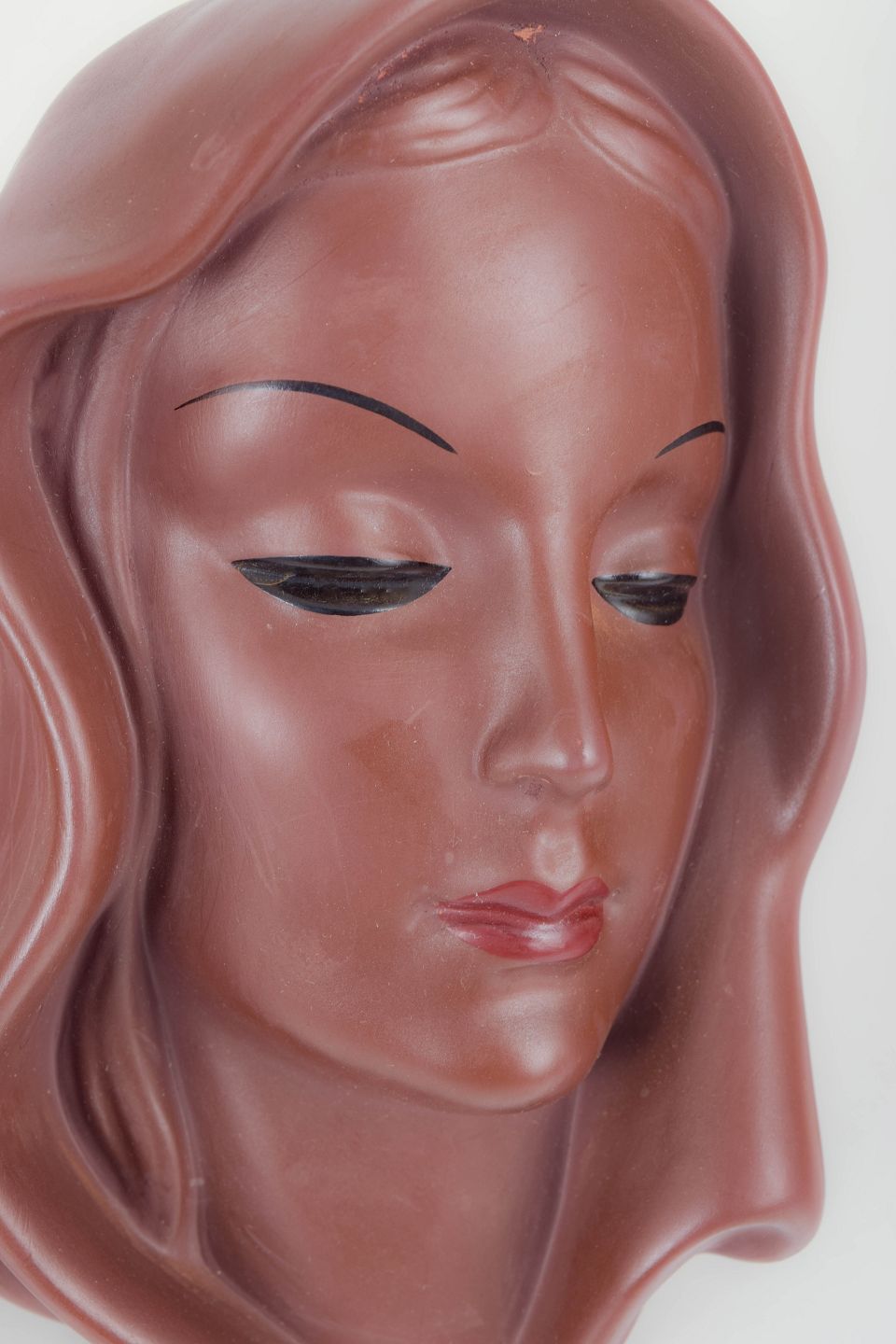 Goldscheider, vægmaske.Art Deco vægmaske i glaseret keramik, model 7831.