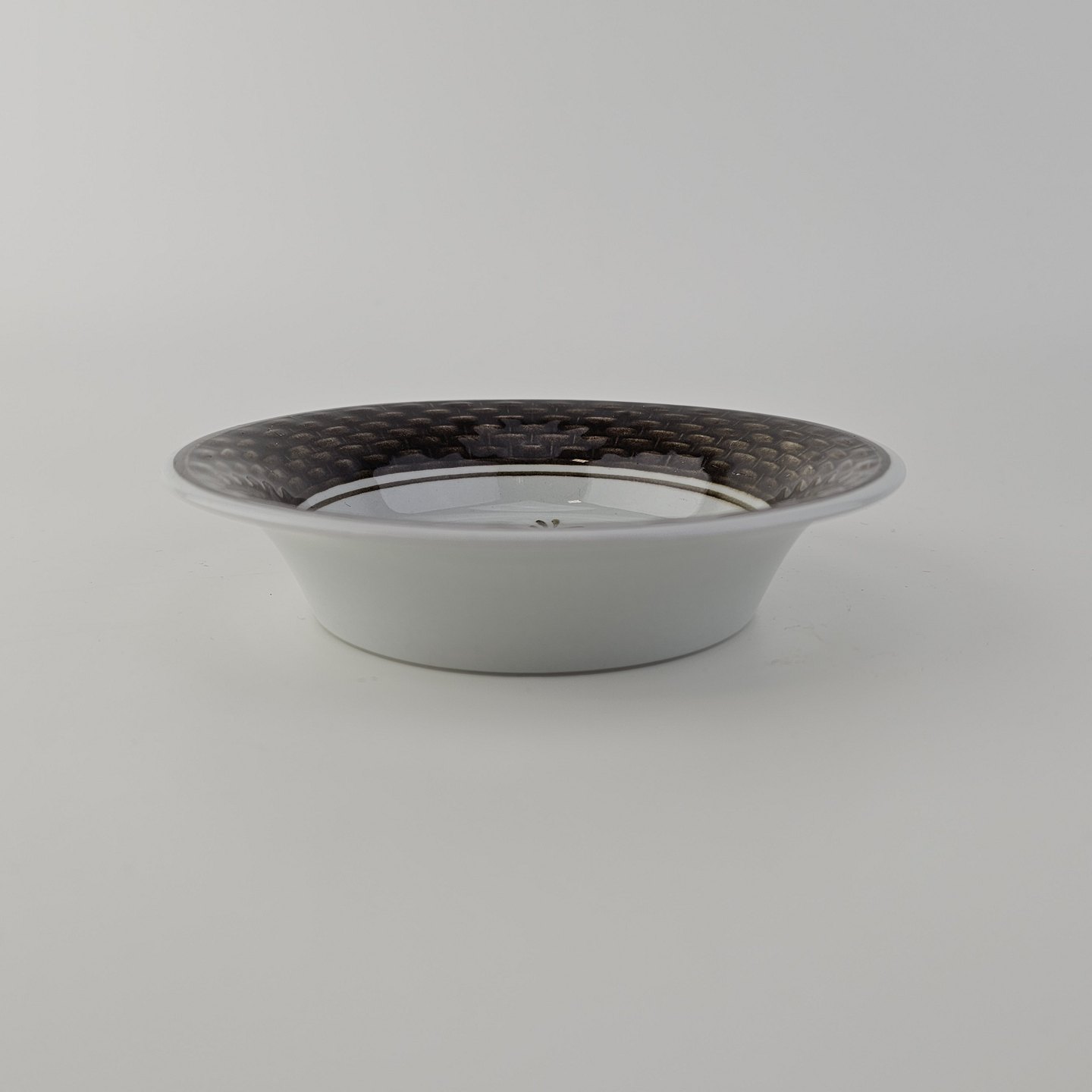 Fajancestellet med flettet kant og dekoration af brune blomster på lys baggrund med brun kant