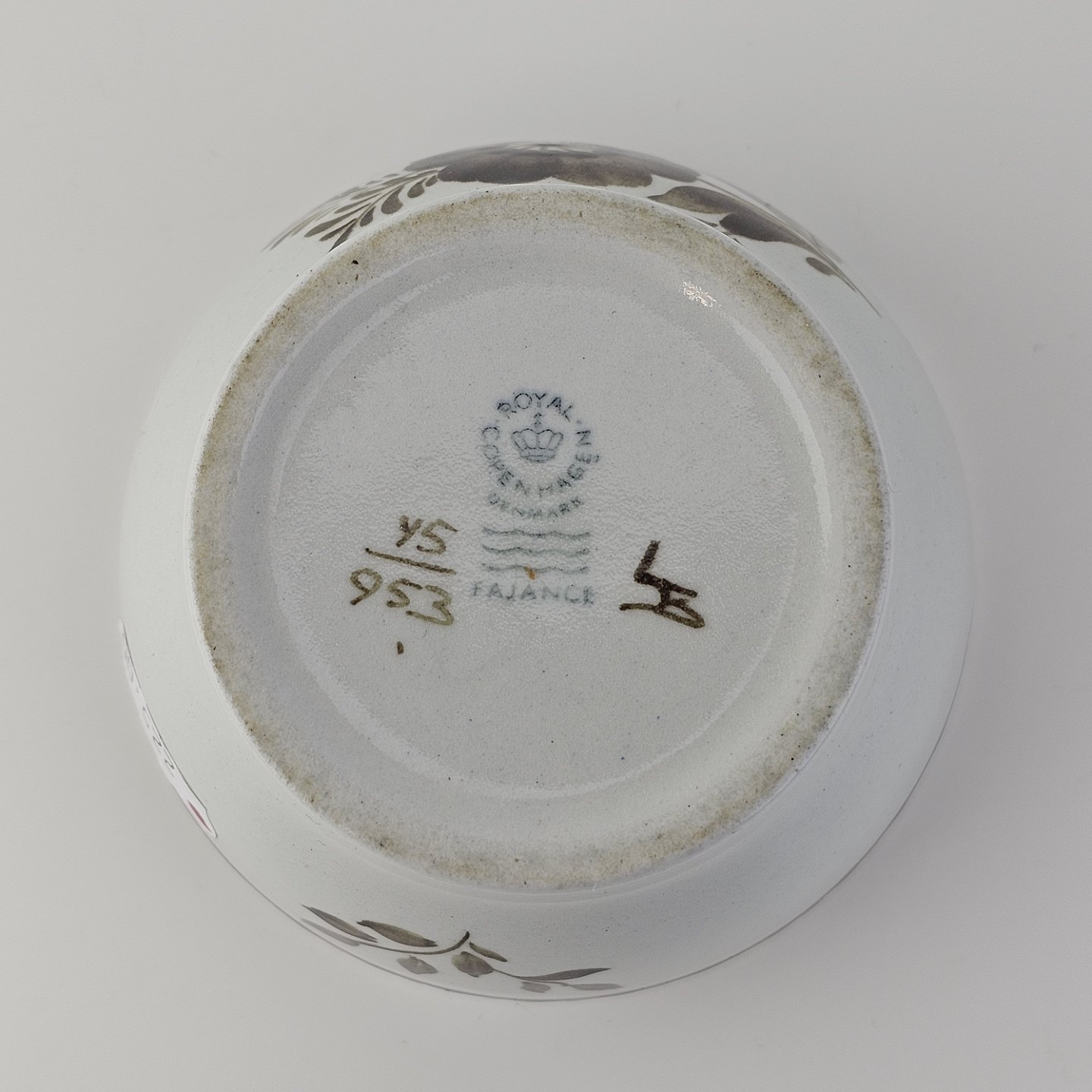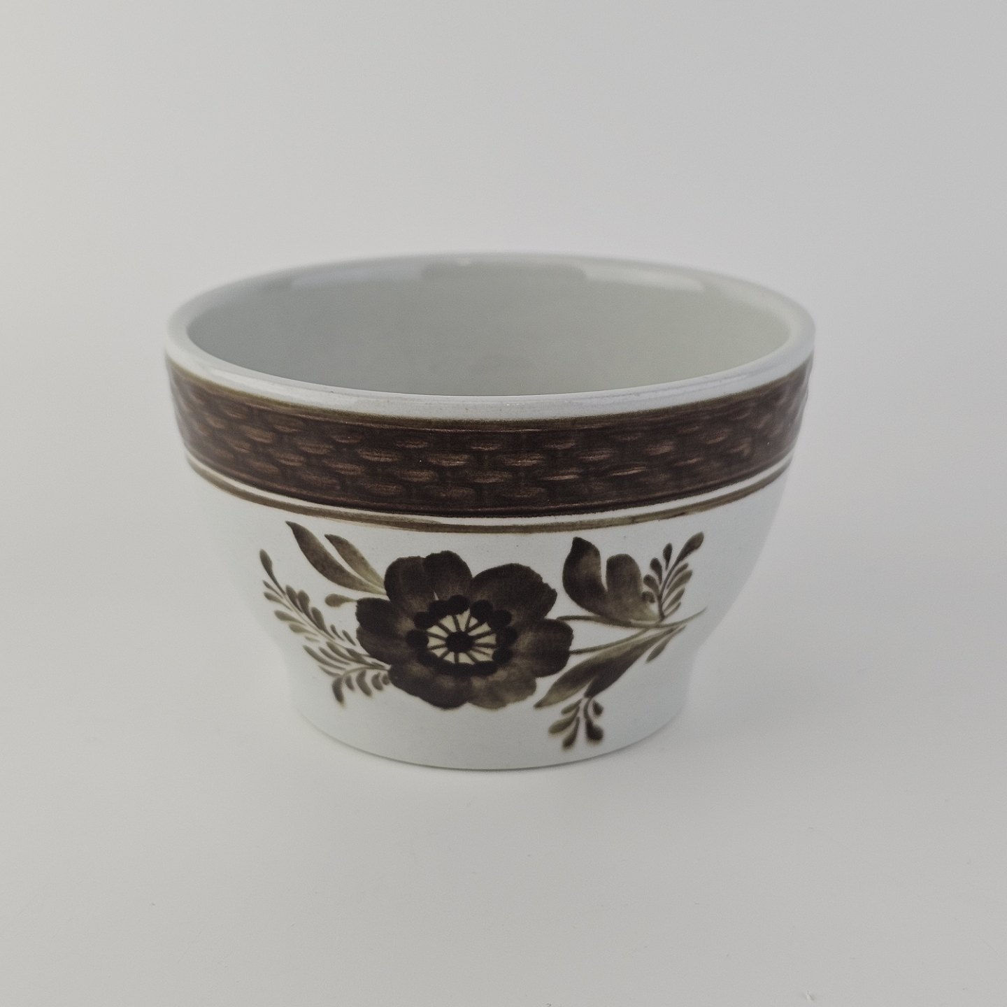 Sukkerskål uden låg i fajance fra stellet Brun Tranquebar fra år 1919Nr 45/953