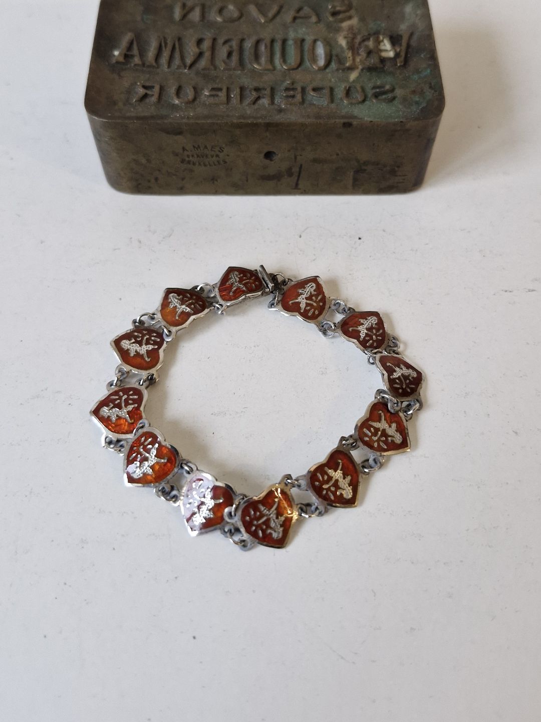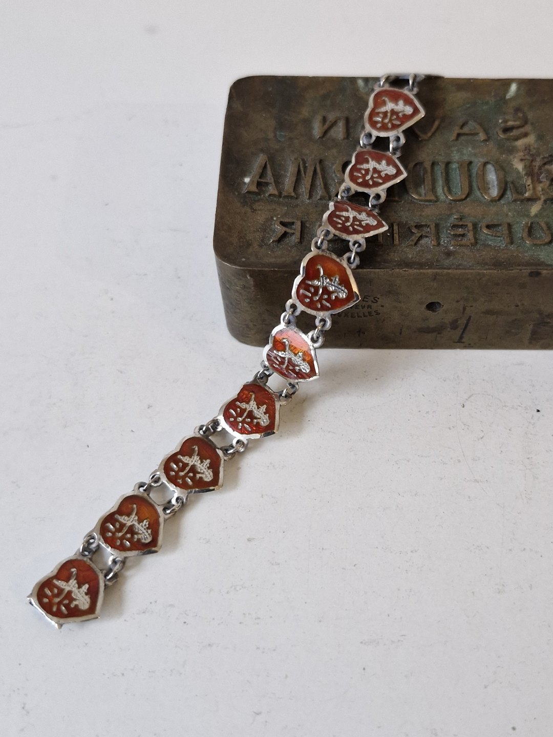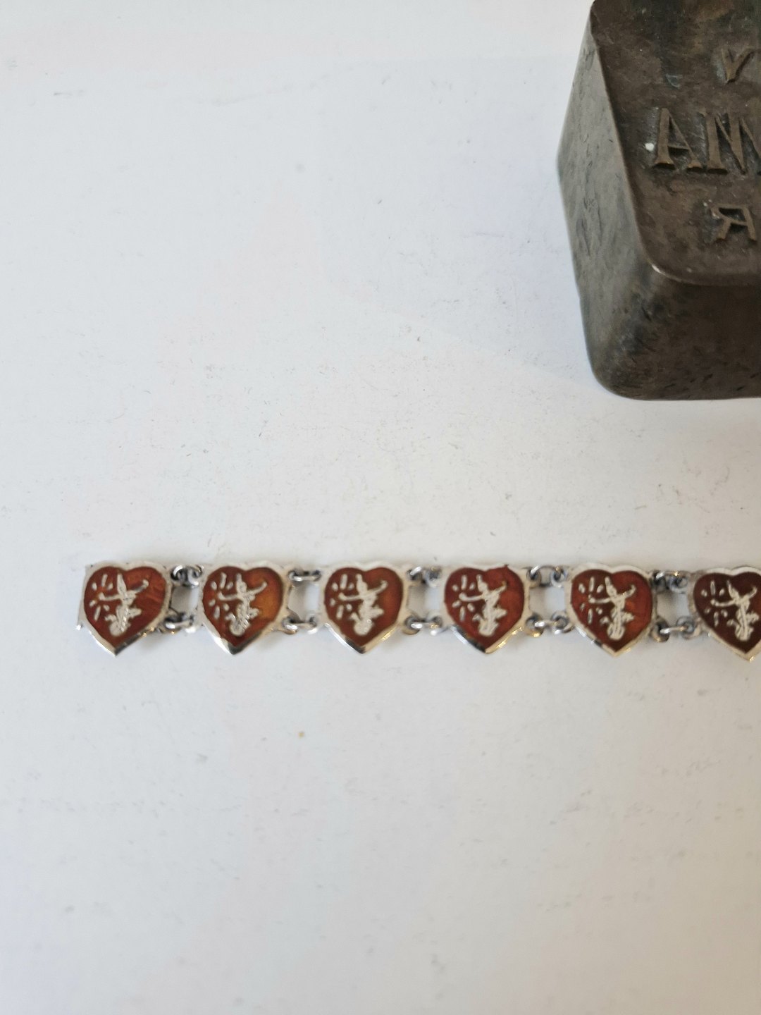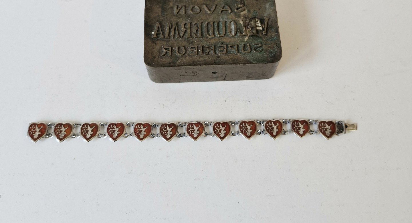 Hjerte armbånd i sølv og rød emaljeStemplet RC - 830