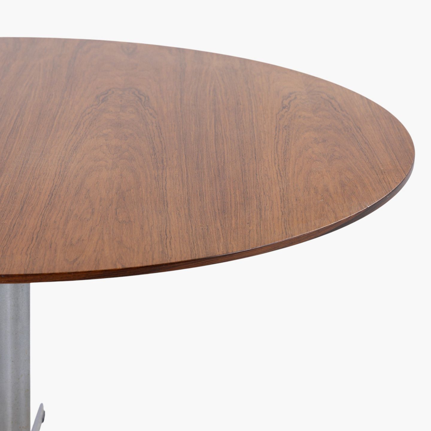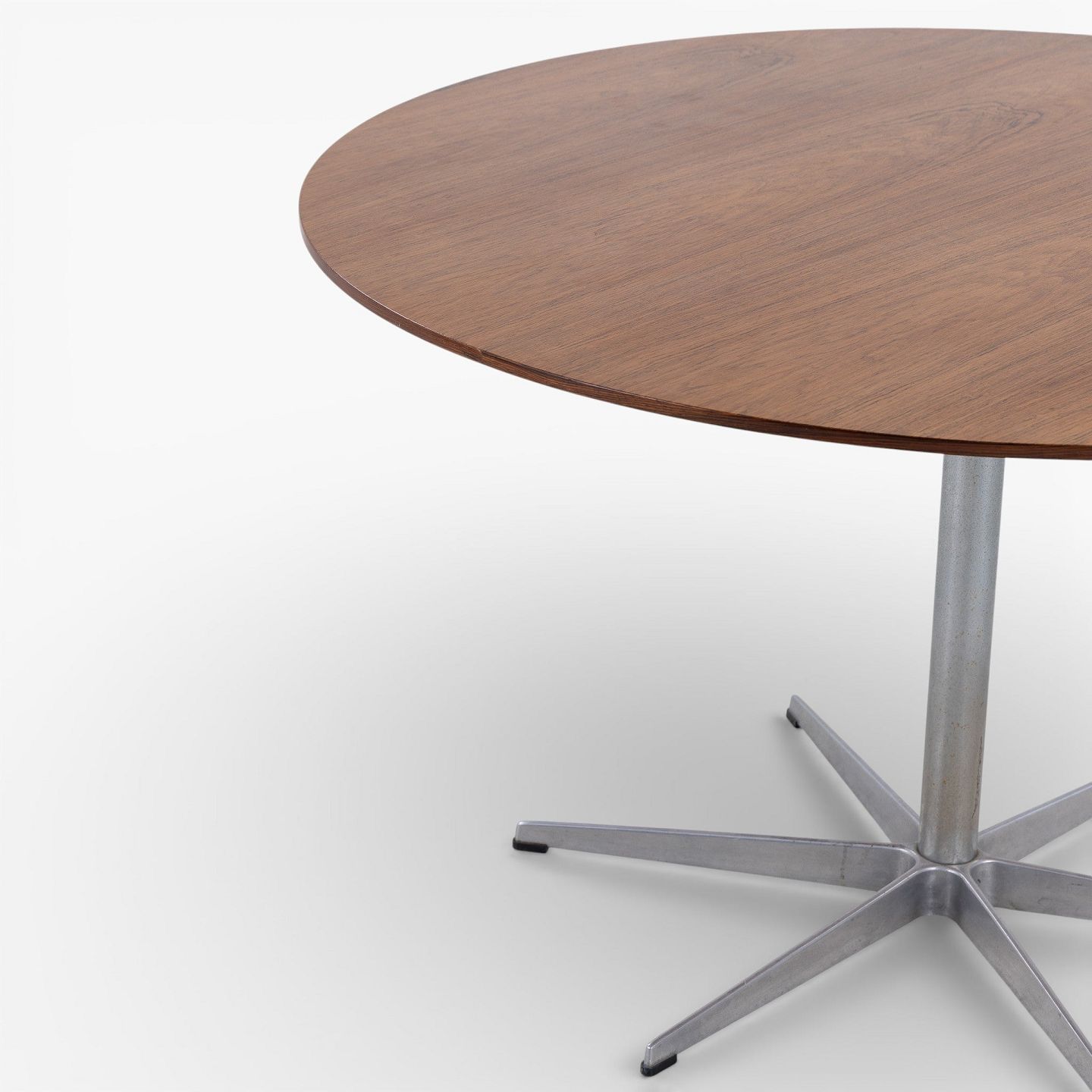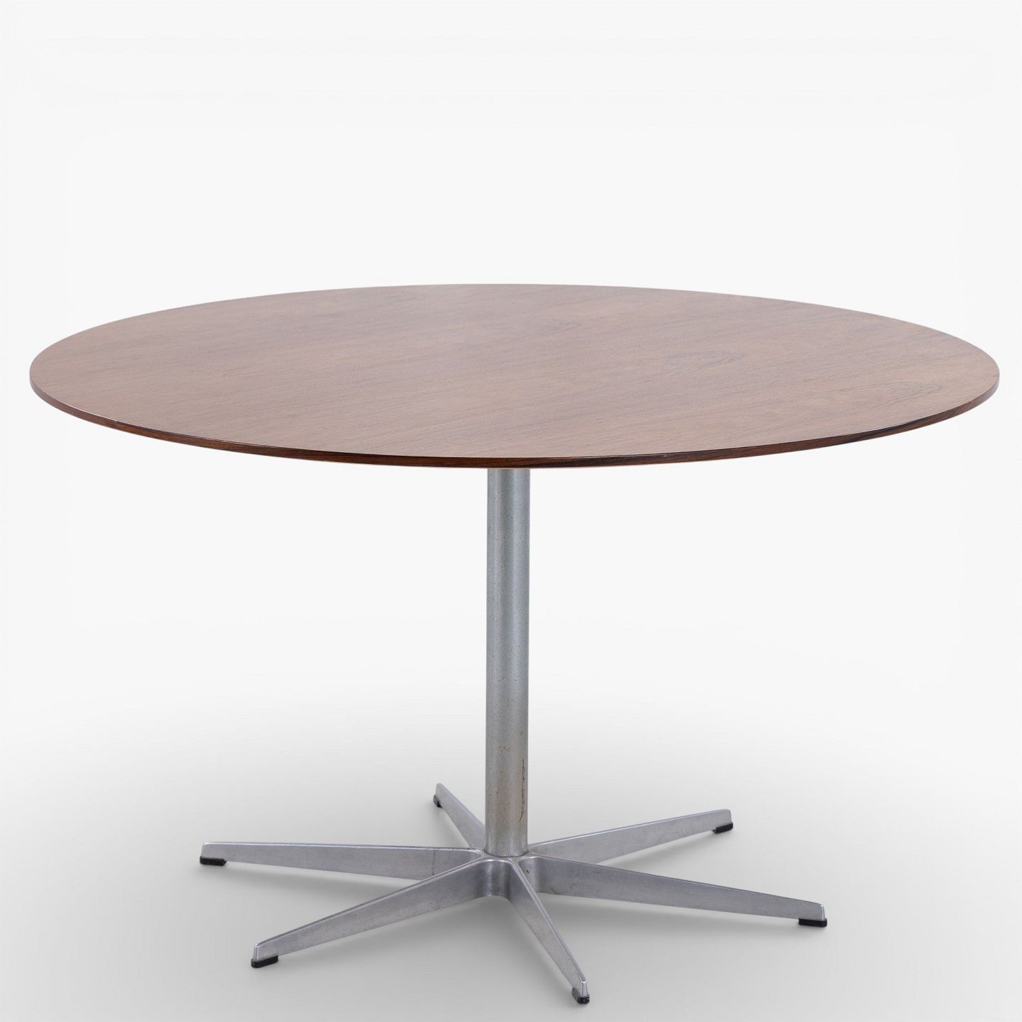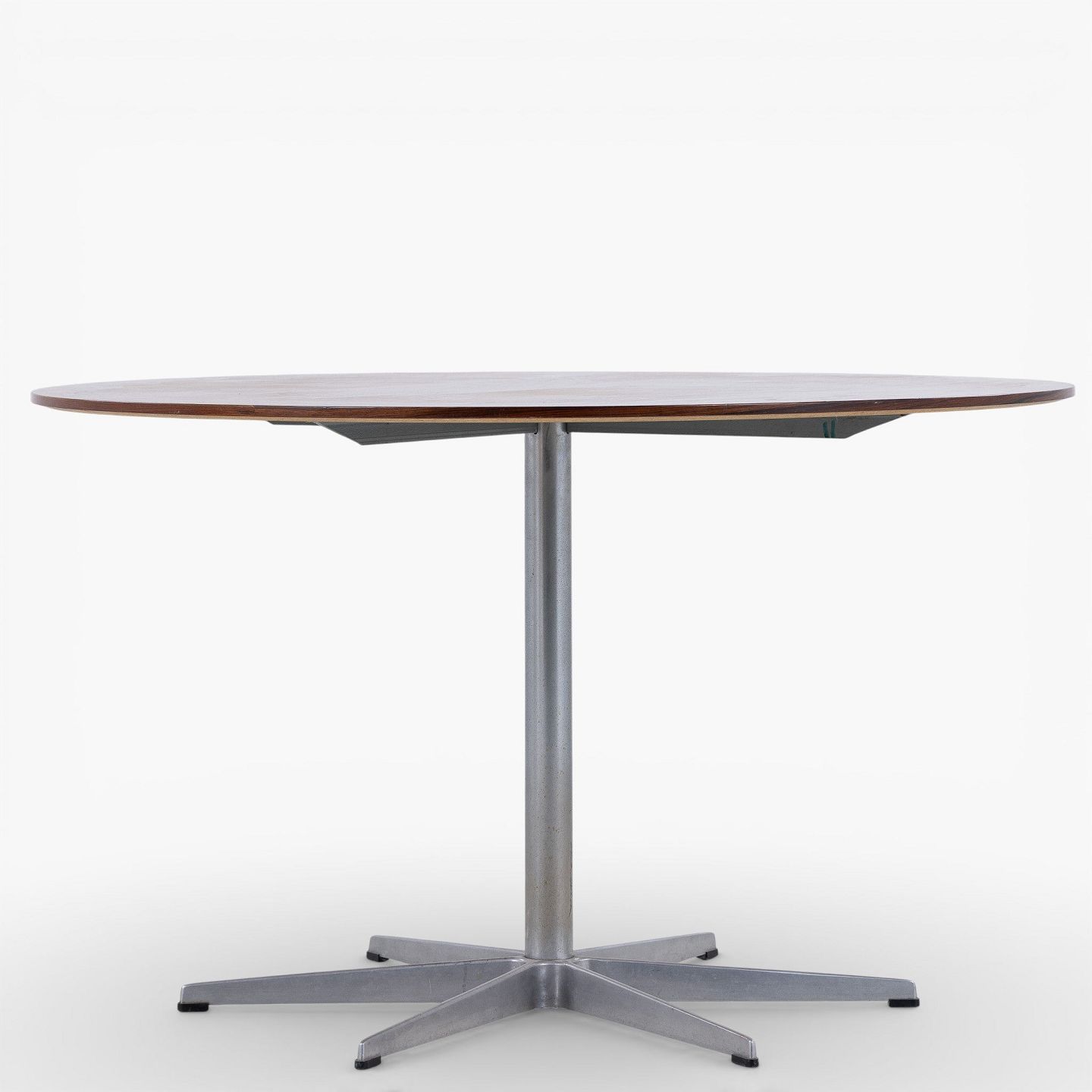 Arne Jacobsen / Fritz Hansen.Spisebord med rund plade i palisander på seksfodet stel i stål.