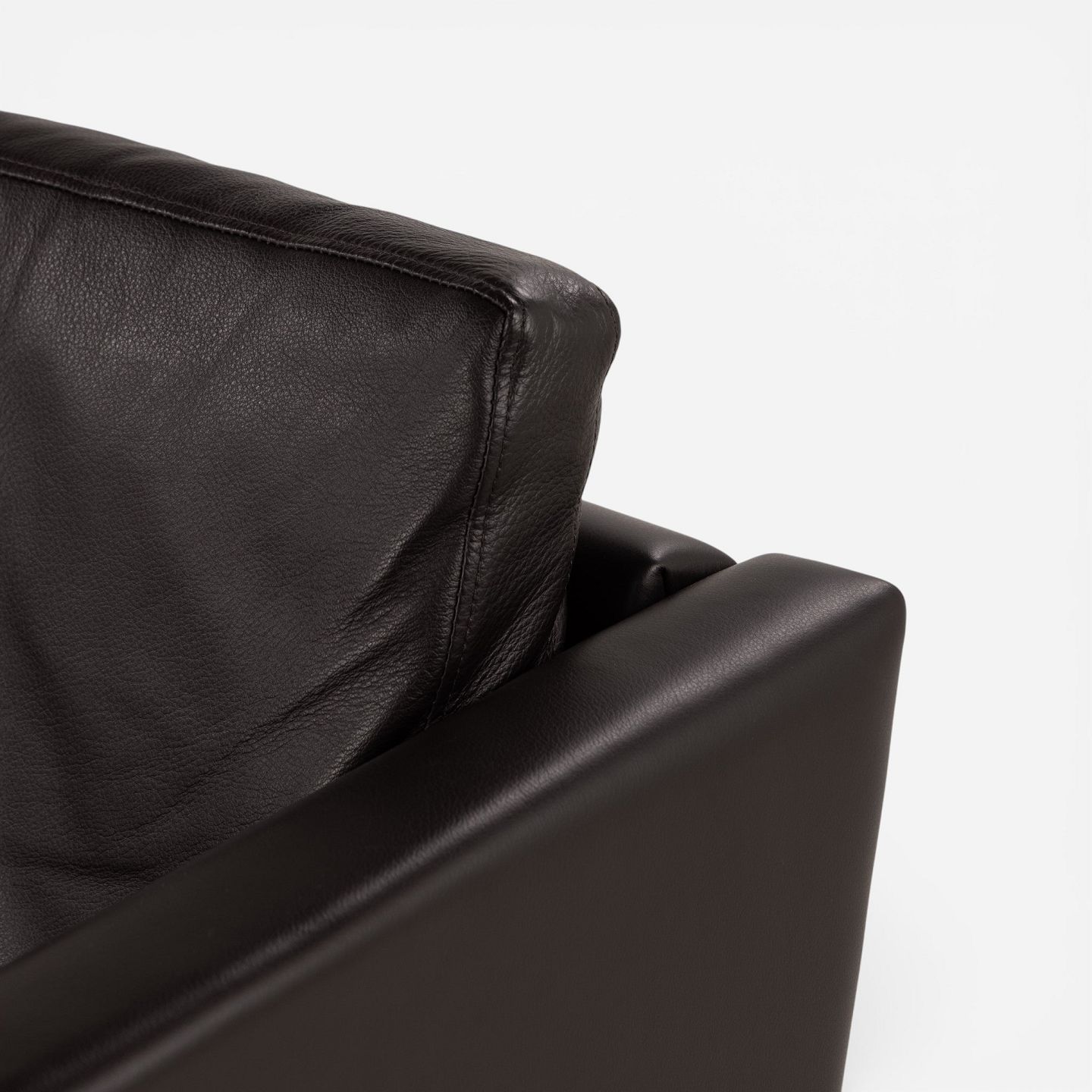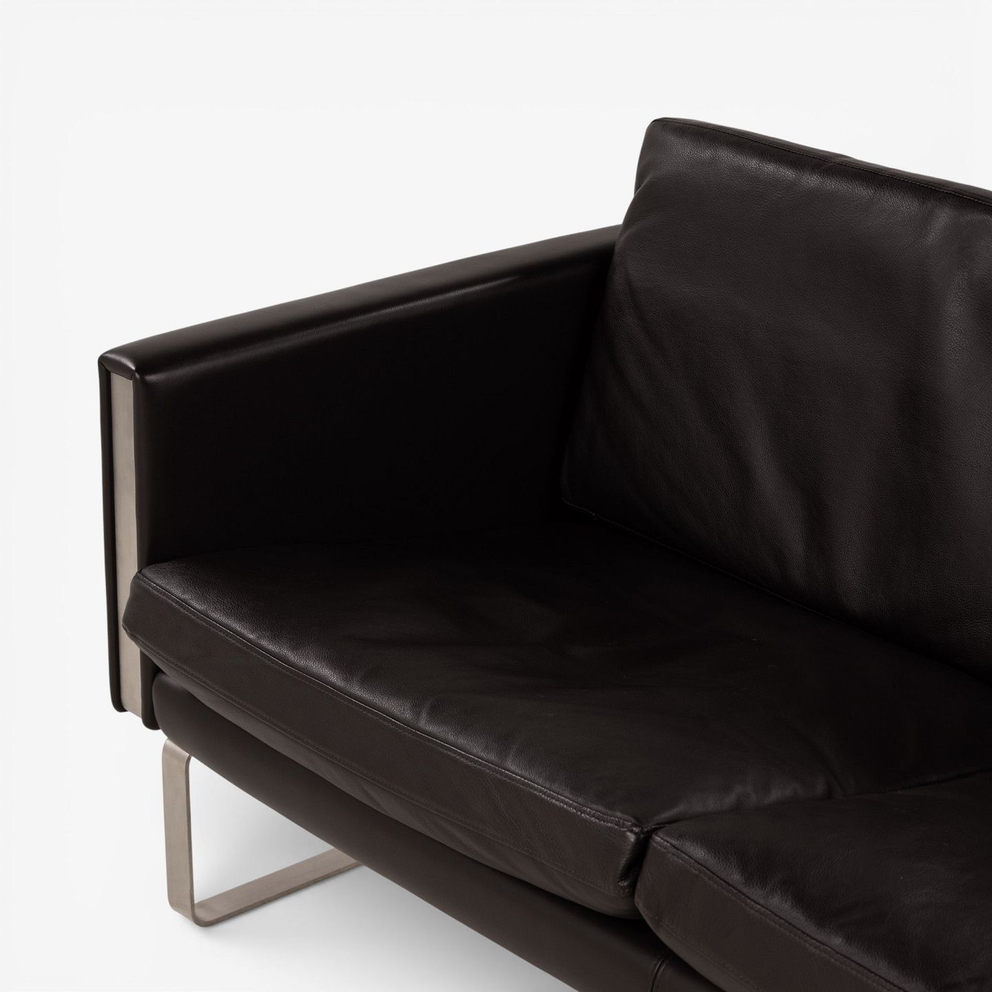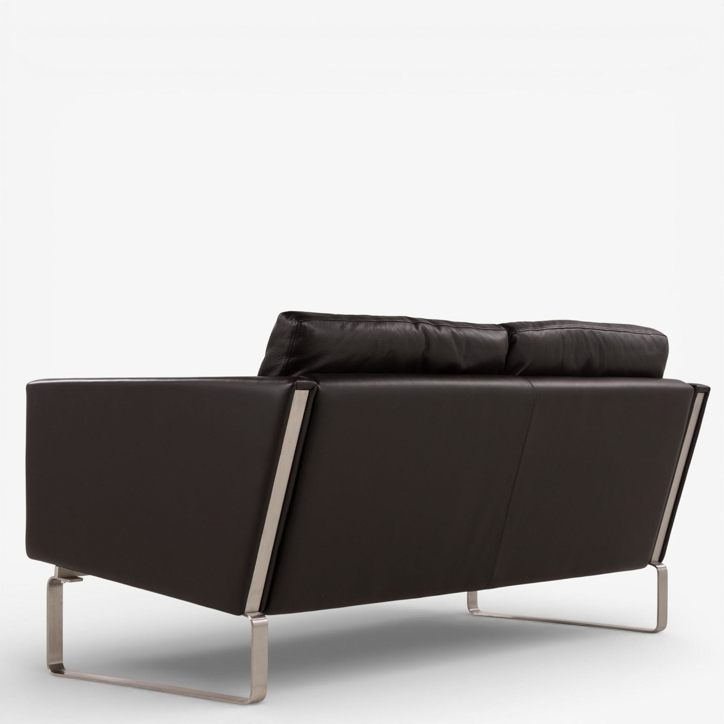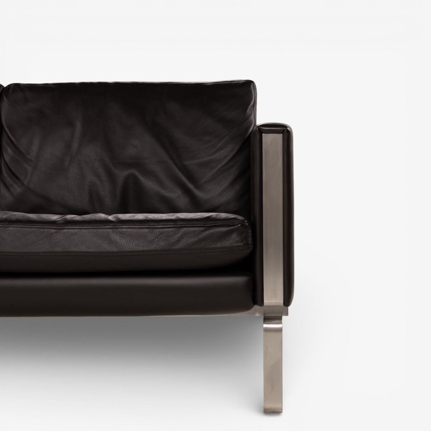 Hans J. Wegner / Carl Hansen & SønCH 102 - 2 pers. sofa i mørkebrunt, patineret semi-anilinlæder med stel i stål. Mærket fra producent.