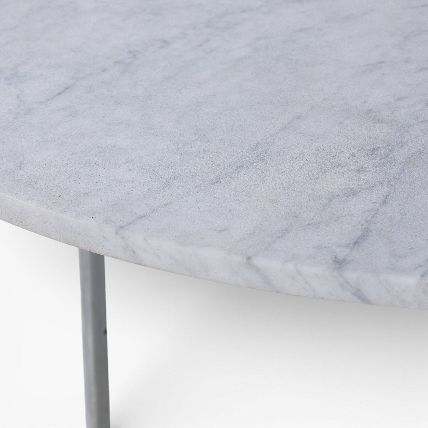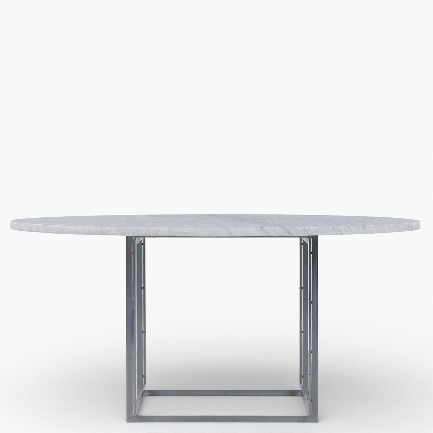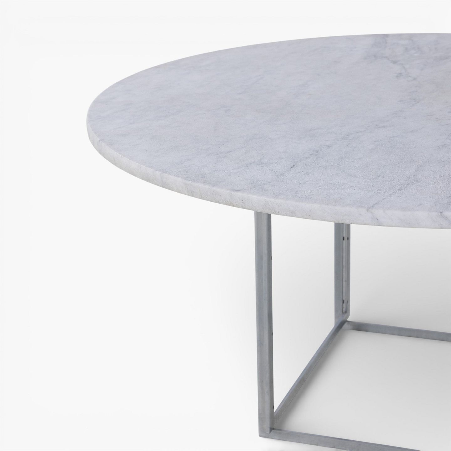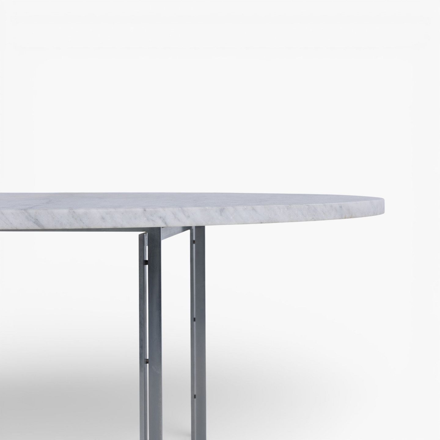 Poul Kjærholm / E. Kold Christensen.PK 54 - Rundt spisebord med lys flintrullet marmor-plade på stel af matforkromet stål. Formgivet i 1963.
