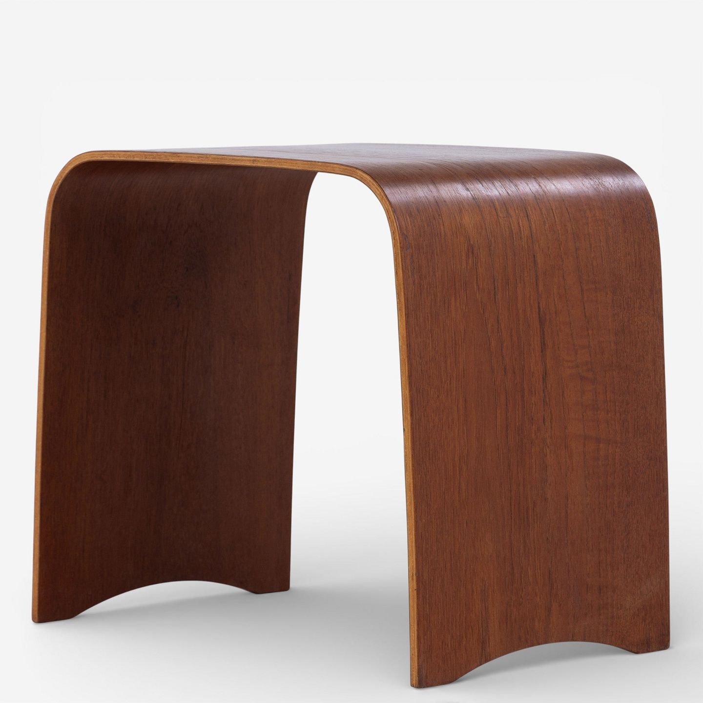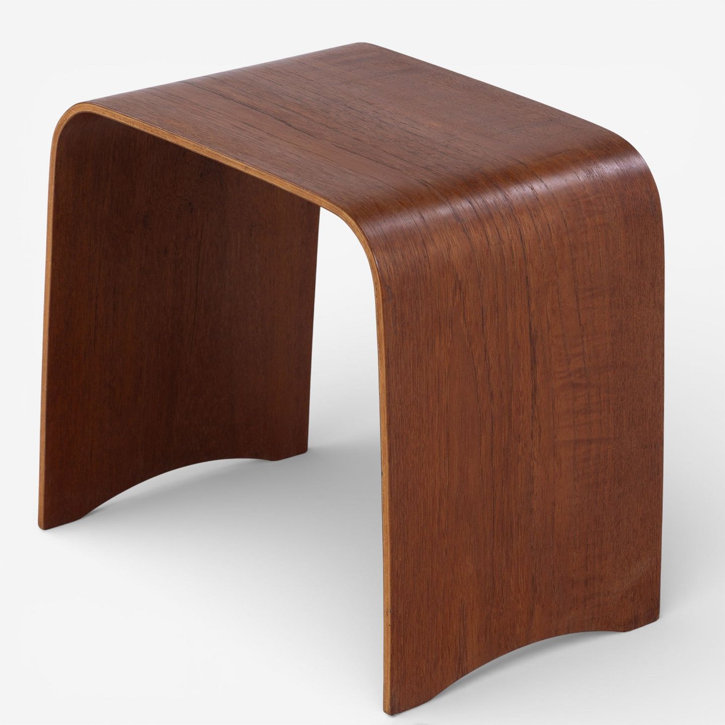Hans Ludvigsen / Fritz Hansen.Model 4515 - Taburet/sidebord i formbøjet teak. Formgivet i 1958. Brændemærket fra producent.