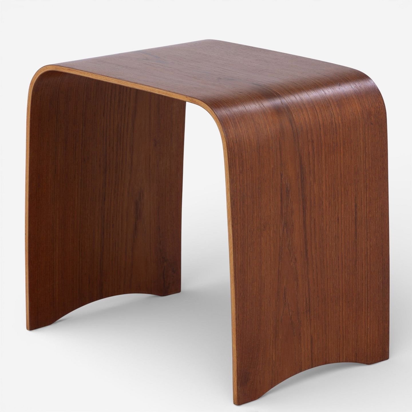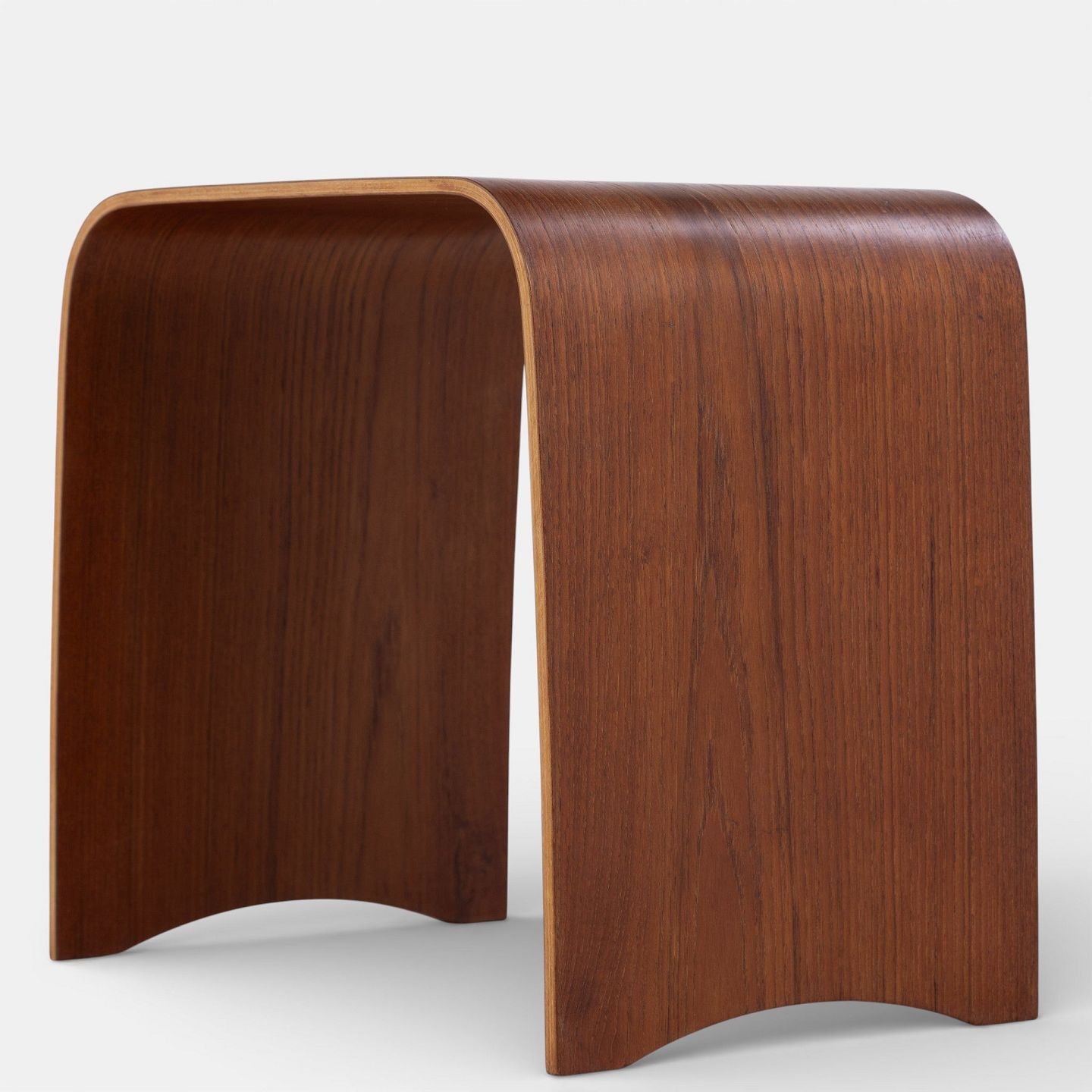 Hans Ludvigsen / Fritz Hansen.Model 4515 - Taburet/sidebord i formbøjet teak. Formgivet i 1958. Brændemærket fra producent.