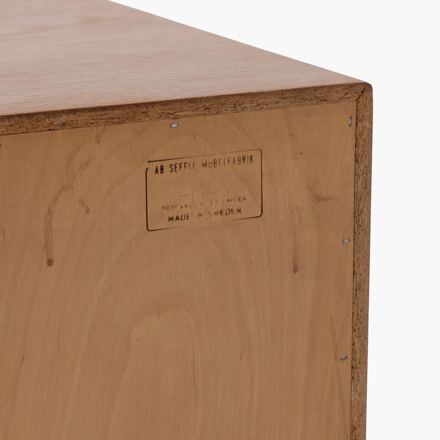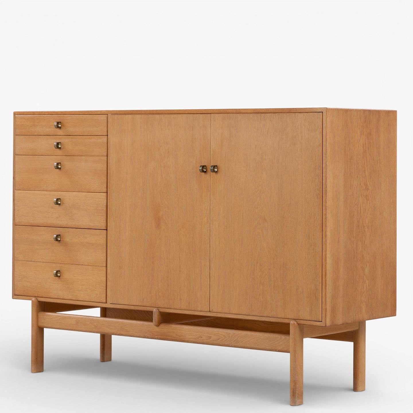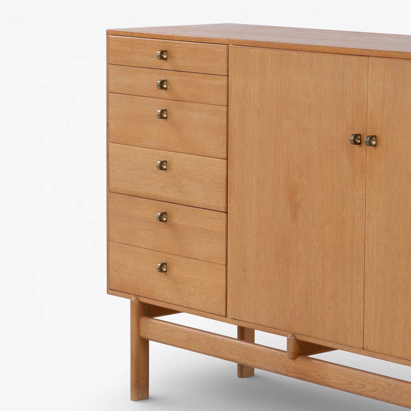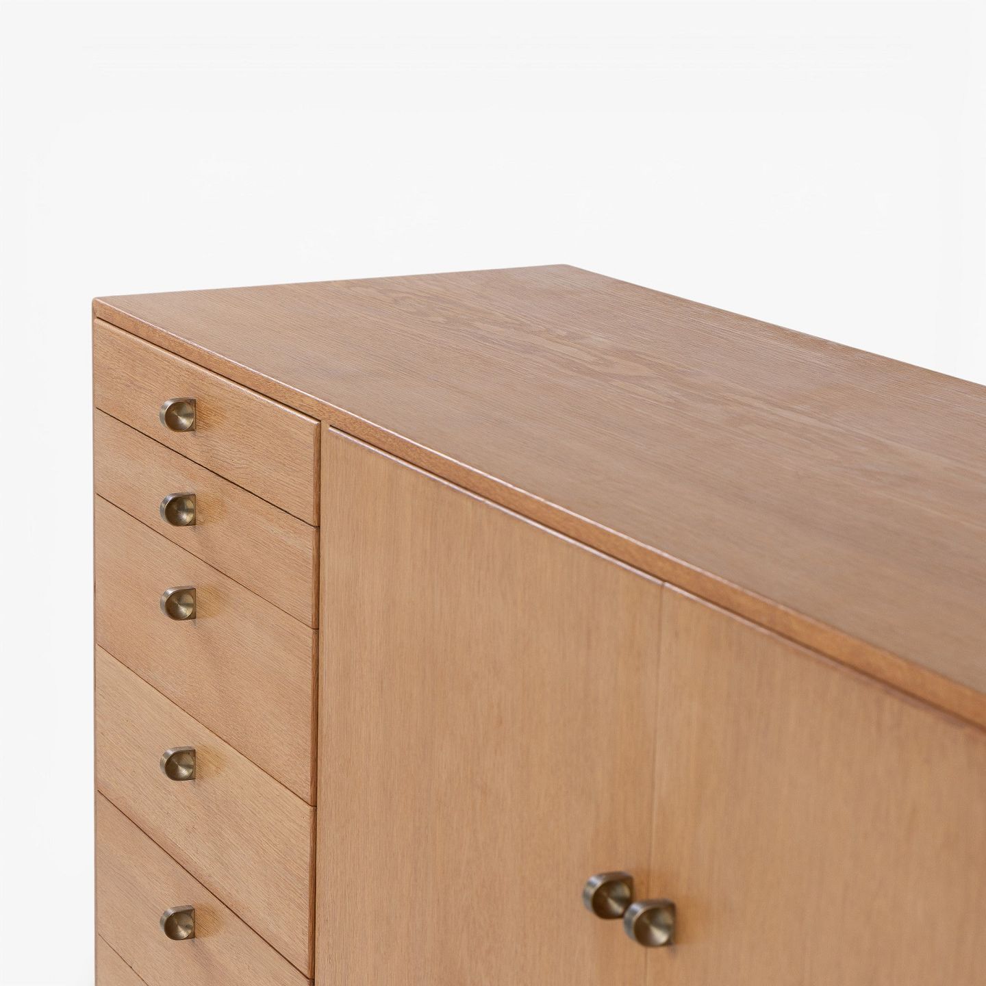 Tove & Edvard Kindt-Larsen / Seffle Möbelfabrik.Skænk i patineret egetræ med to låger og otte skuffer m. messinggreb. Stemplet fra producent.
