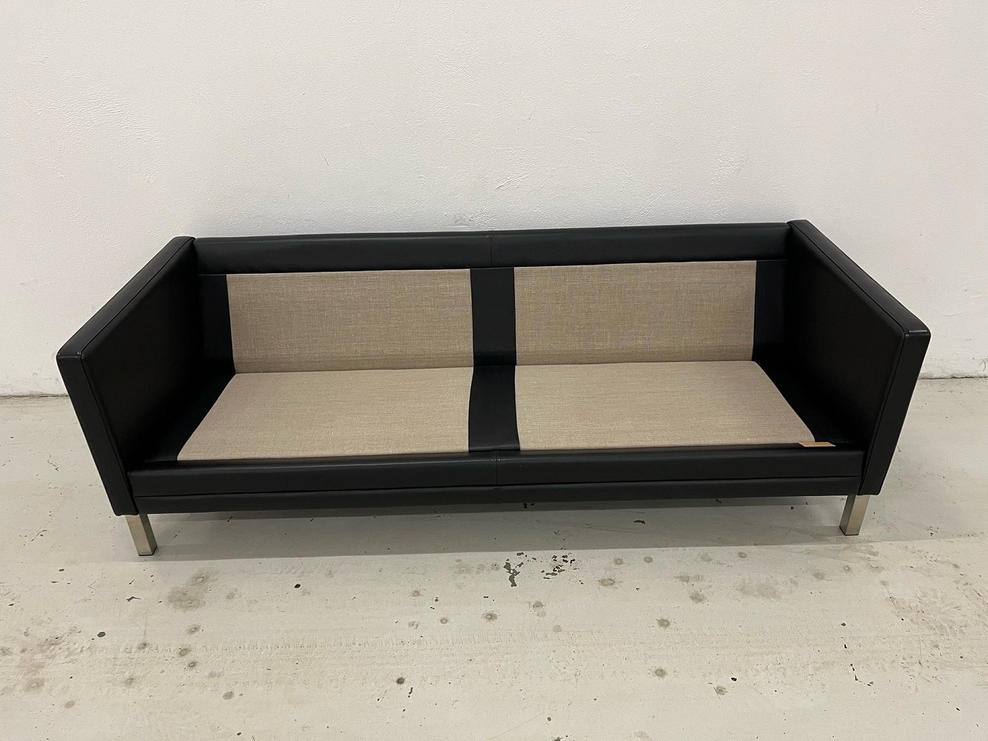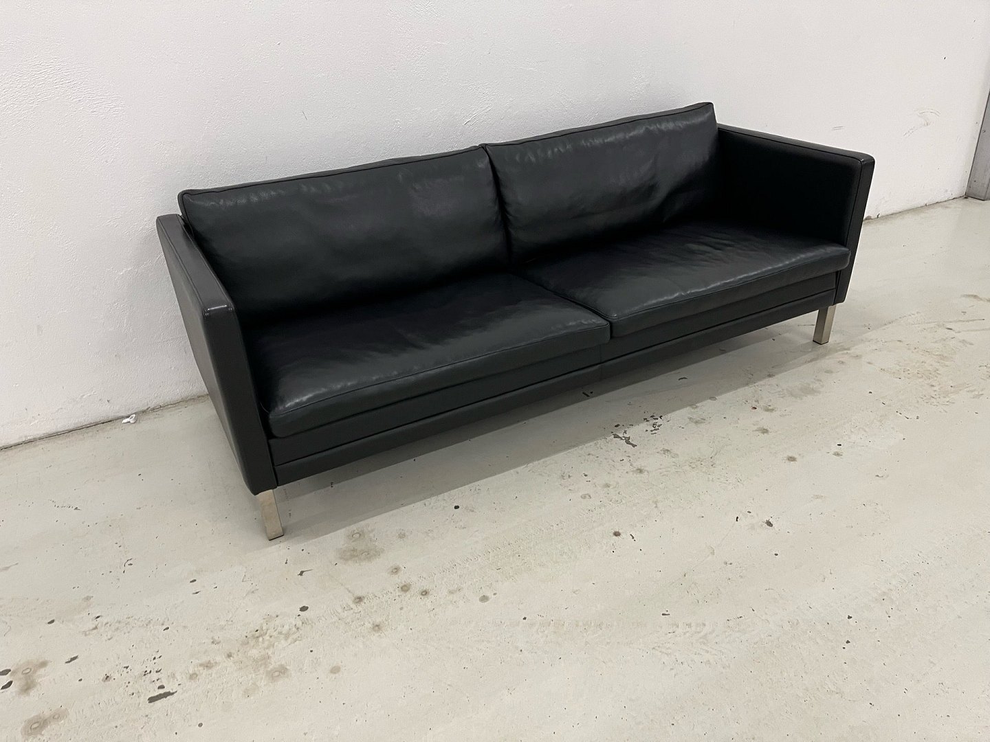 Mogens Hansen MH276 – 3-Sitzer-Sofa. Exklusives 3-Sitzer-Sofa, Modell MH276, entworfen von Mogens Hansen. Das Sofa ist aus Loke-Leder (Gruppe 2) in Schwarz gefertigt und verfügt über elegante Beine aus gebürstetem Stahl. Neupreis: 42.959 DKK. Das Sofa stammt aus einem Nichtraucherhaushalt ohne Haustiere, wurde nur sehr wenig benutzt und weist keinerlei Kratzer, Dellen oder sonstige Mängel auf. Es befindet sich in einem sehr guten Zustand. Vor Kurzem wurde es professionell gereinigt und das Leder gepflegt, was sowohl die Optik als auch die Langlebigkeit gewährleistet. MH276 ist das letzte von Mogens Hansen entworfene Händler