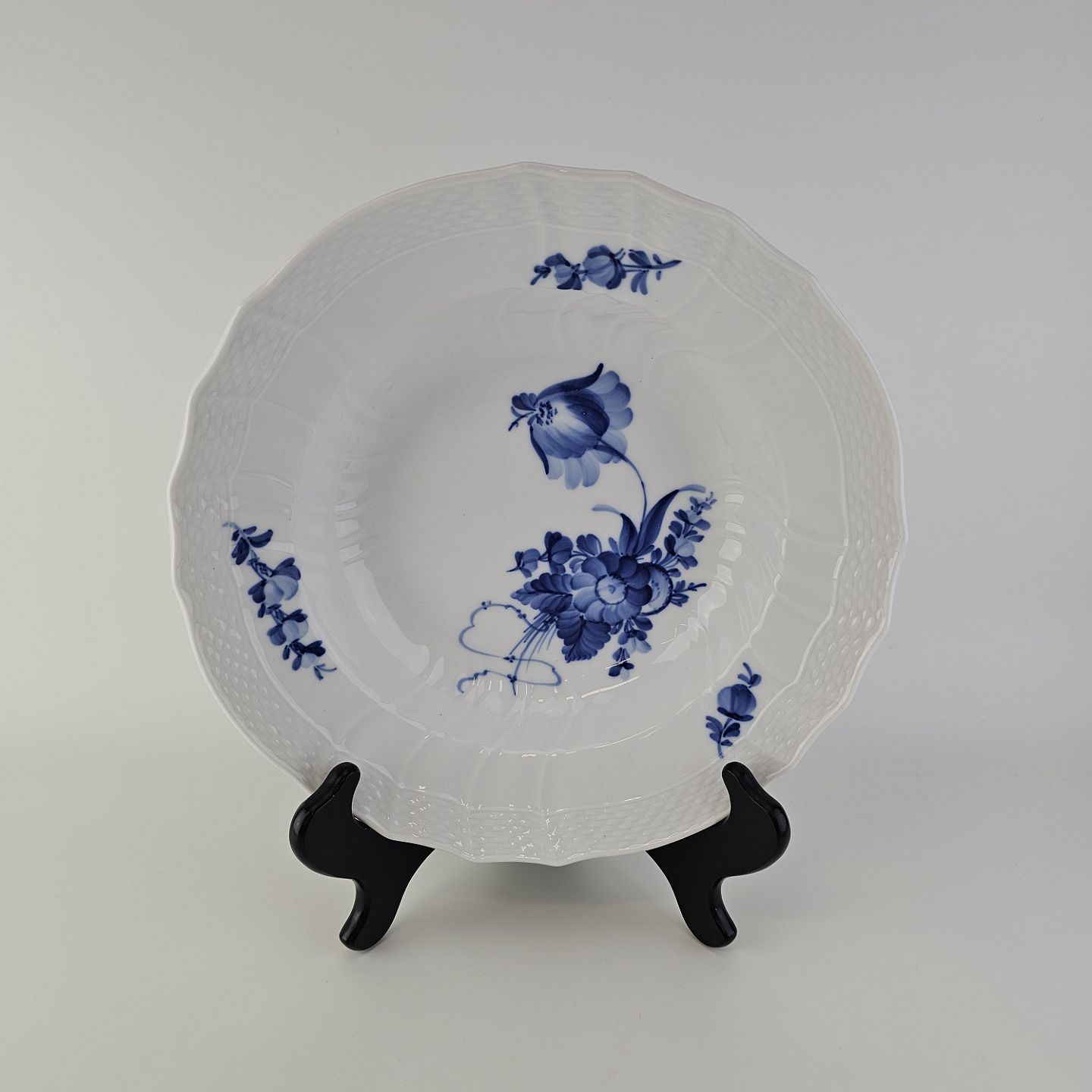 Dyb tallerken i porcelæn fra stellet Blå Blomst svejfetNr 10/1614