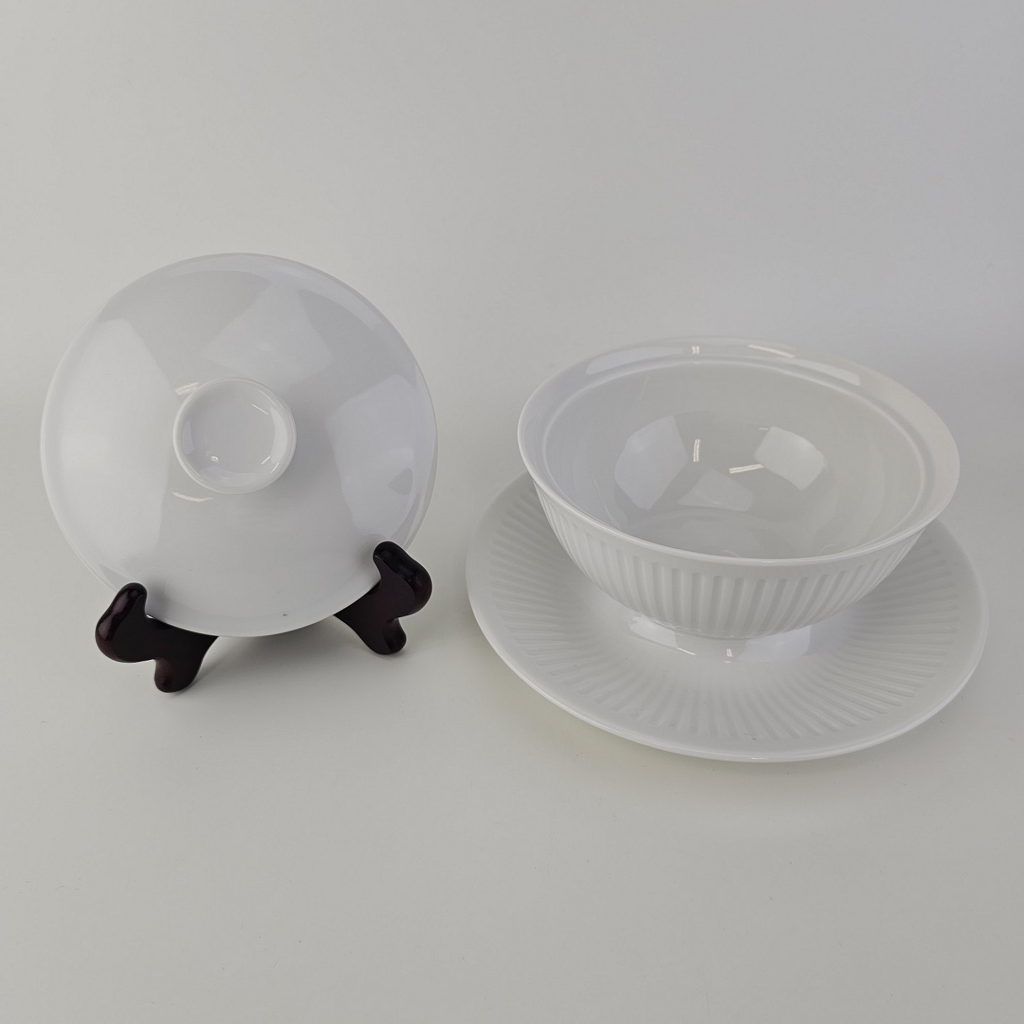 Bouillonkop med låg og underkop i porcelæn fra stellet GeorgianaIkke nummereret