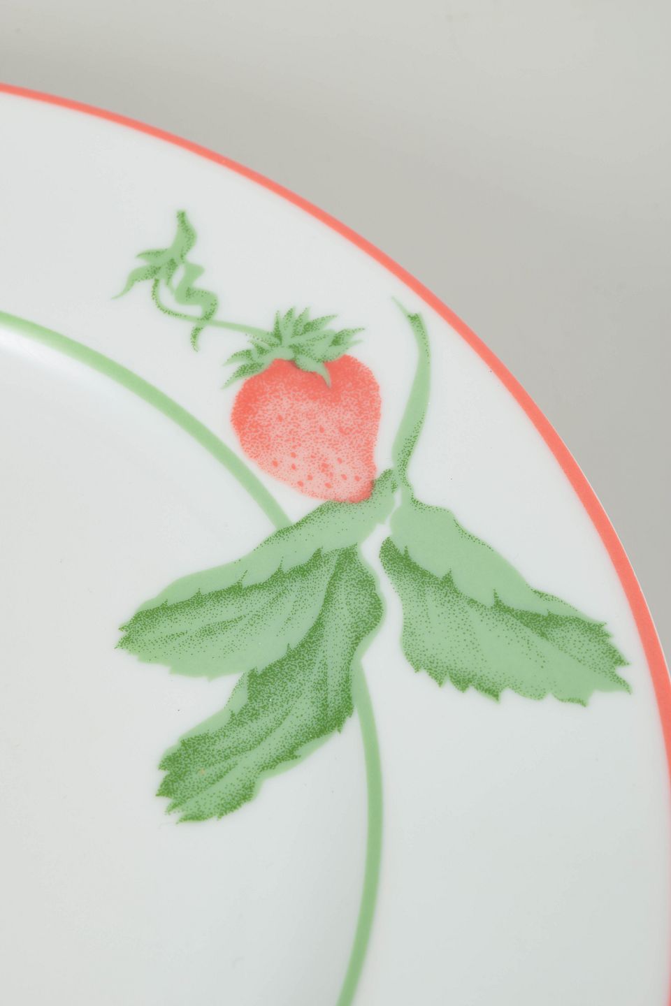 Limoges-porcelæn er kendt for sin fine kvalitet og lange tradition for dekoreret bordservice. I 1980’erne blev frugt- og botaniske motiver populære som et friskt og dekorativt udtryk til hverdags- og serveringsservice. Serien Fraise er karakteristisk for perioden med sit naturalistiske jordbærmotiv og farvede kanter, der giver et let og klassisk udtryk.
