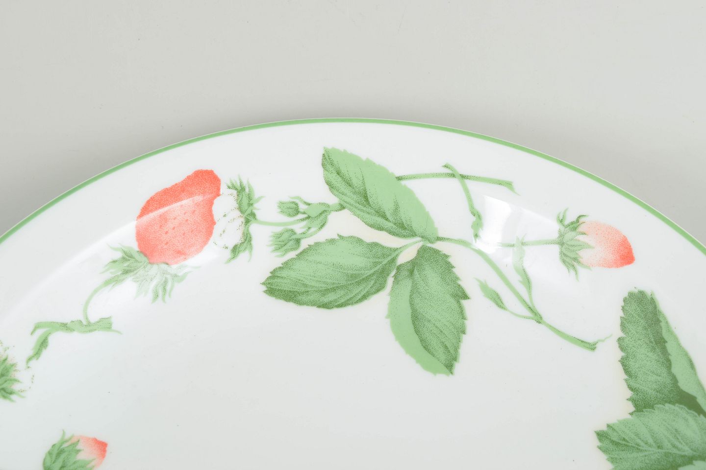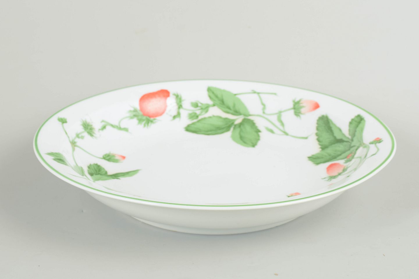 Bill Goldsmith for Limoges, Fraise, stor skål.Stor rund skål i porcelæn med dekoration af jordbær og blade langs kanten i serien Fraise.