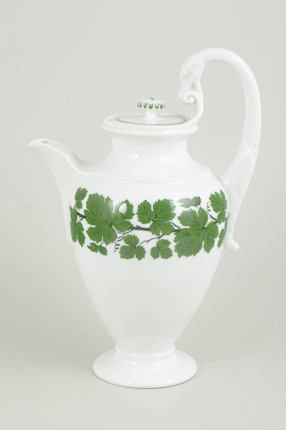 Meissen, chokoladekande fra den grønne vinløvsserie.Chokoladekande i porcelæn med grøn vinranke- og vinløvsdekoration omkring korpus; fra den grønne vinløvsserie.