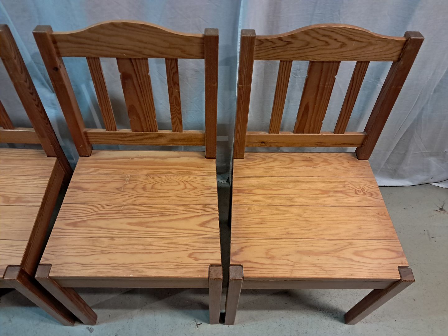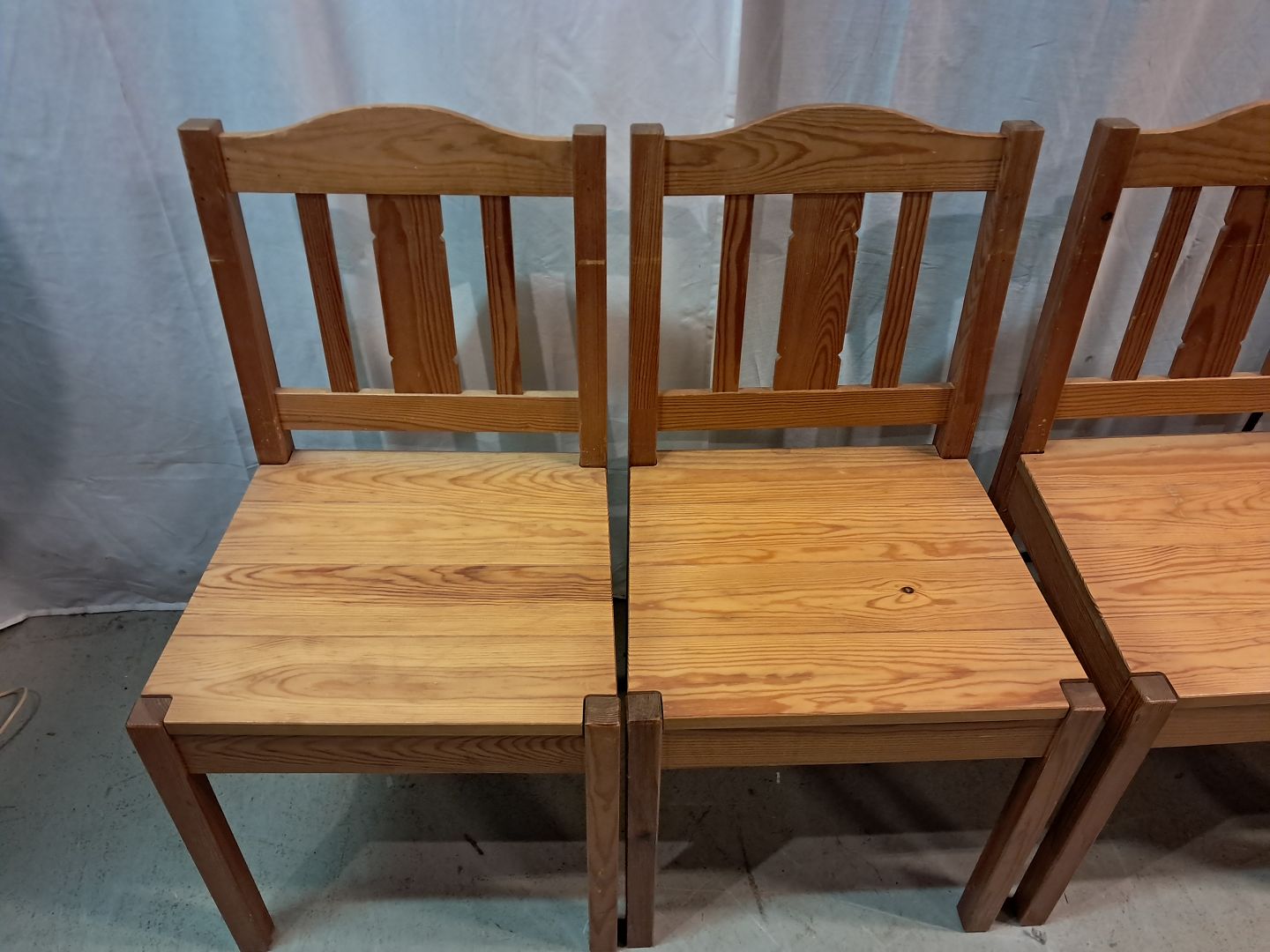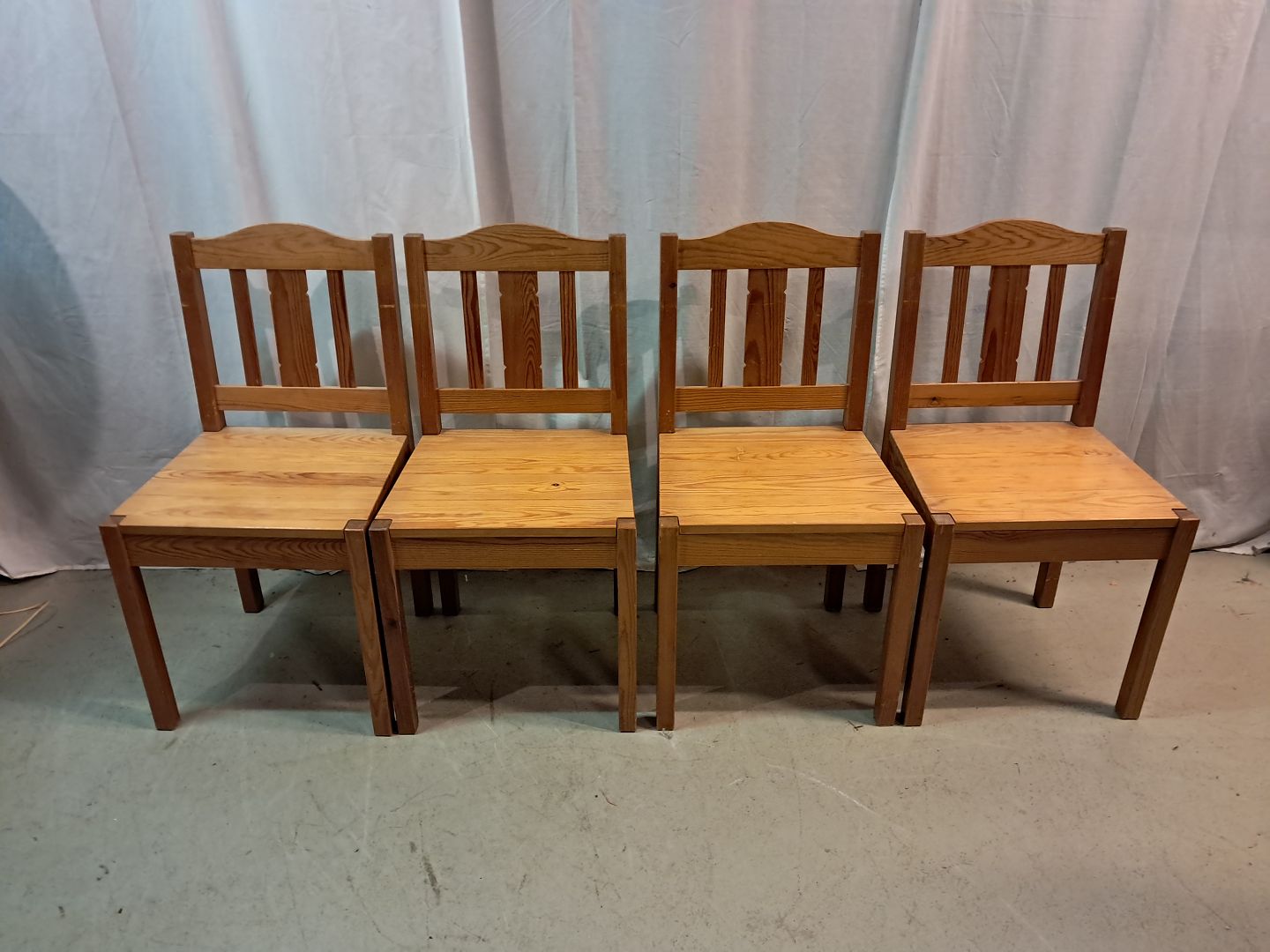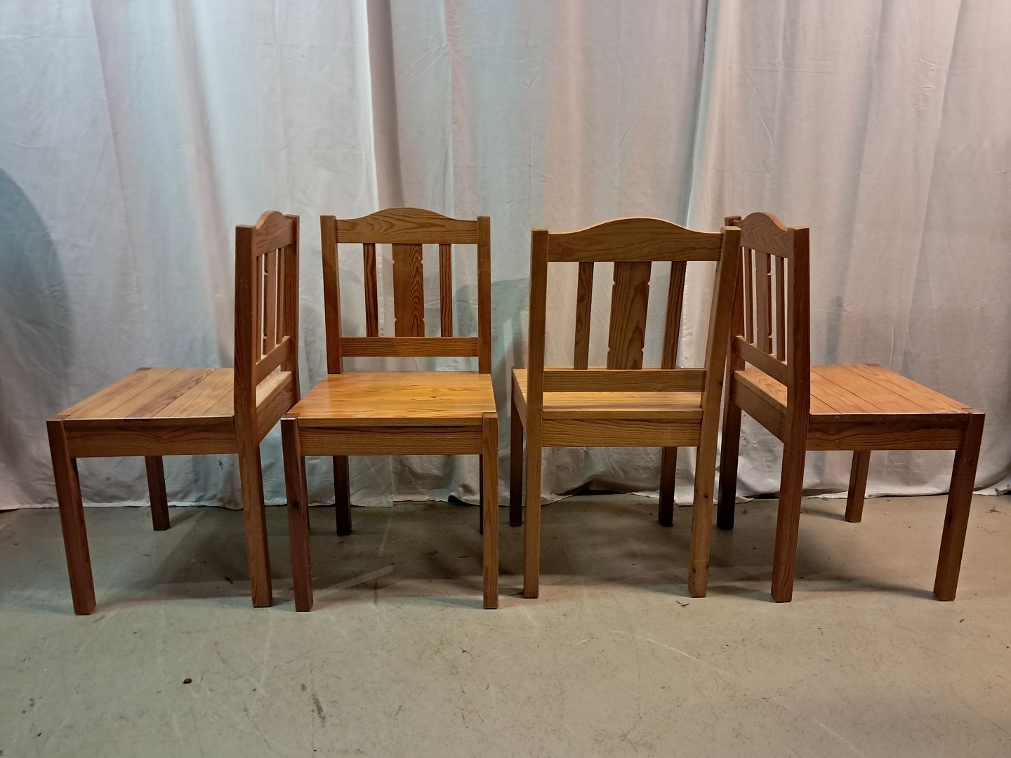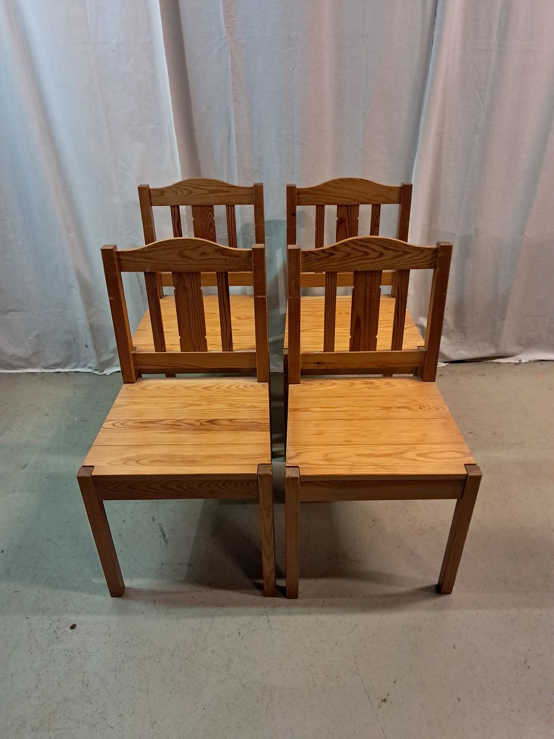 4 Stole i massivt fyrretræ, fra 1980erne.Den har brugsspor.