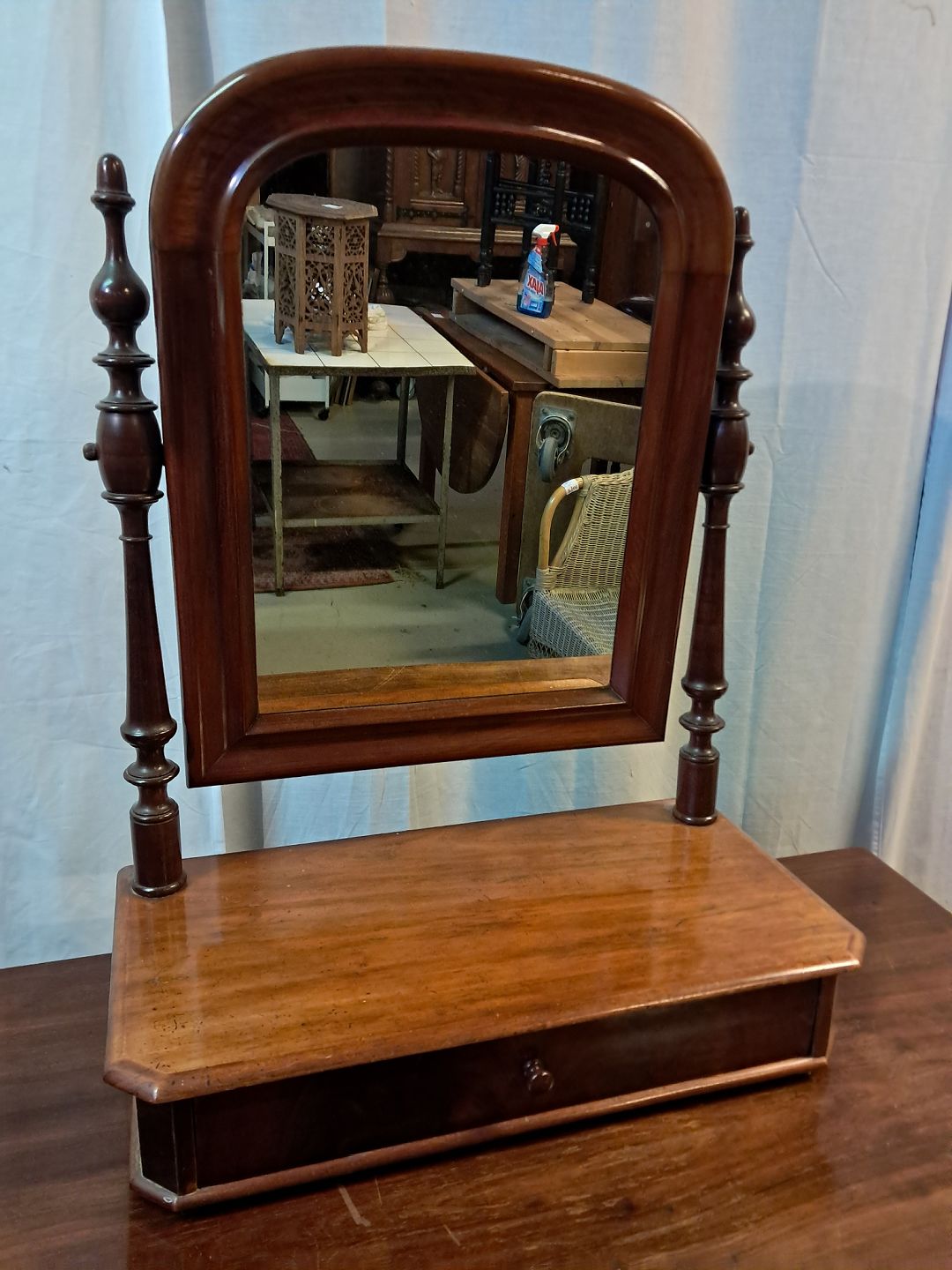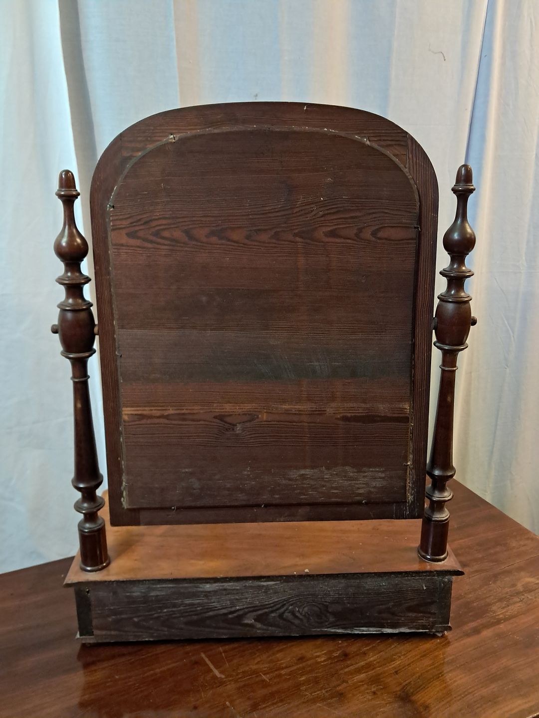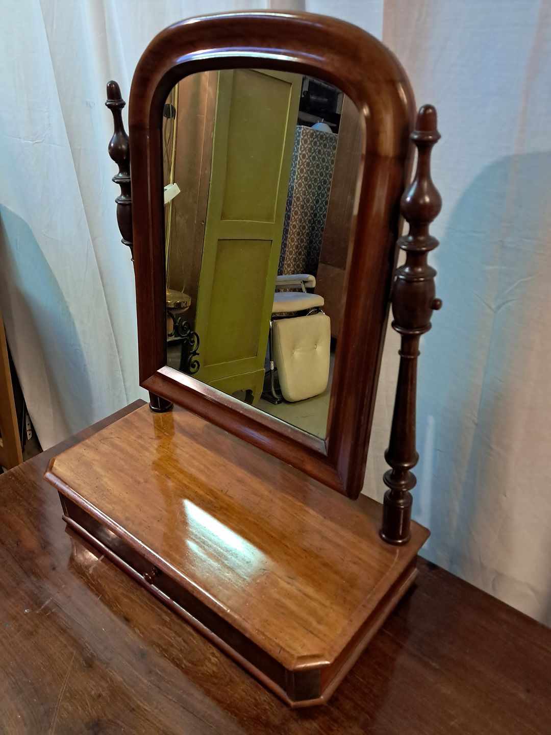 Spejlopsats i fineret mahogni, fra 1910erne.Detn har brugsspor.