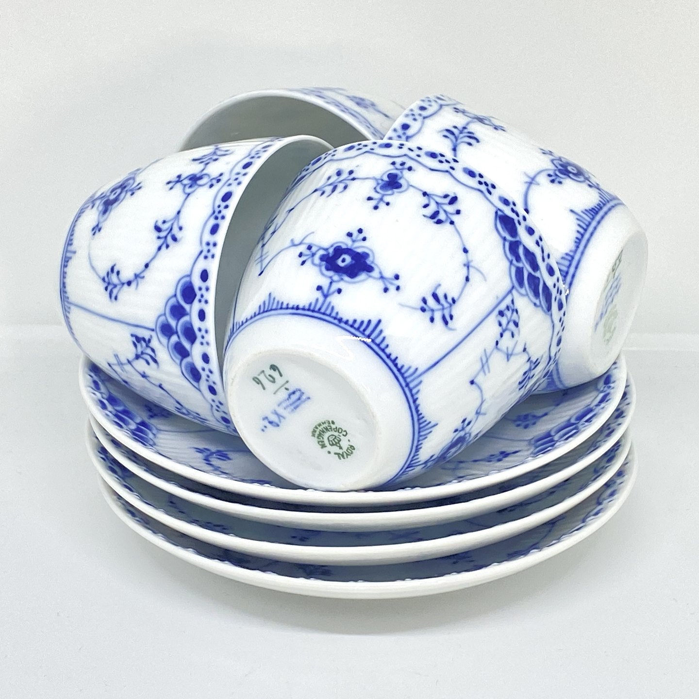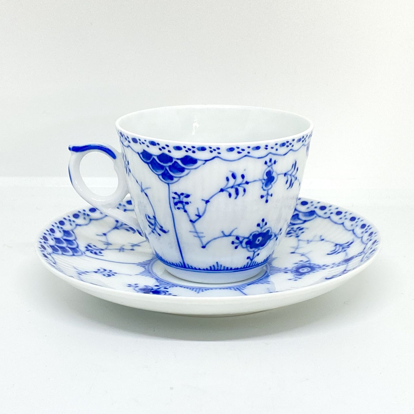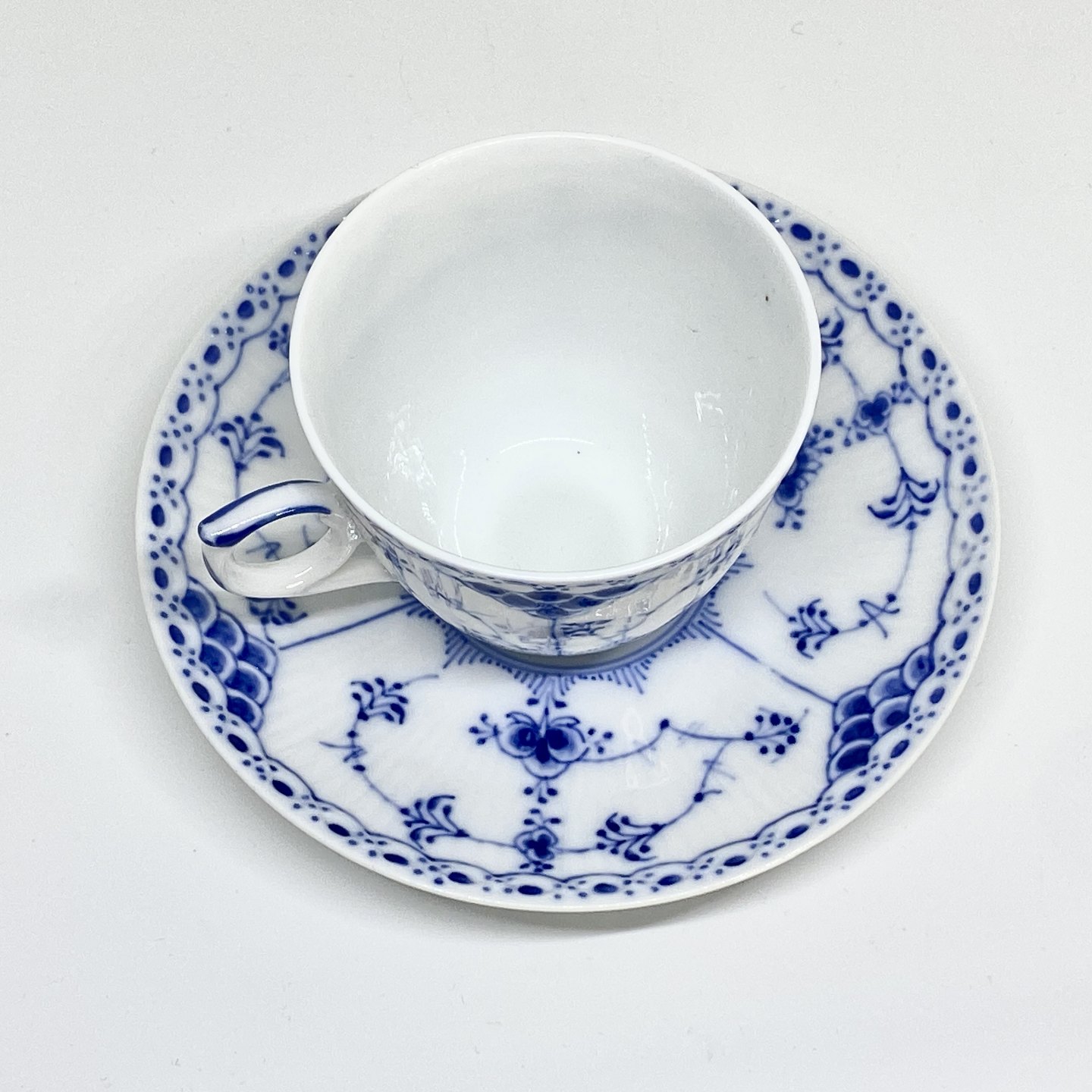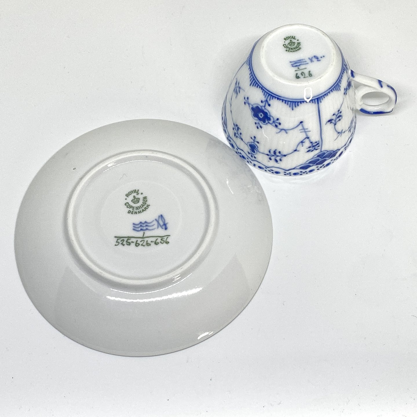Royal Copenhagen/Kgl Musselmalet halvblonde kaffekop og underkop.Dekorations nummer kop