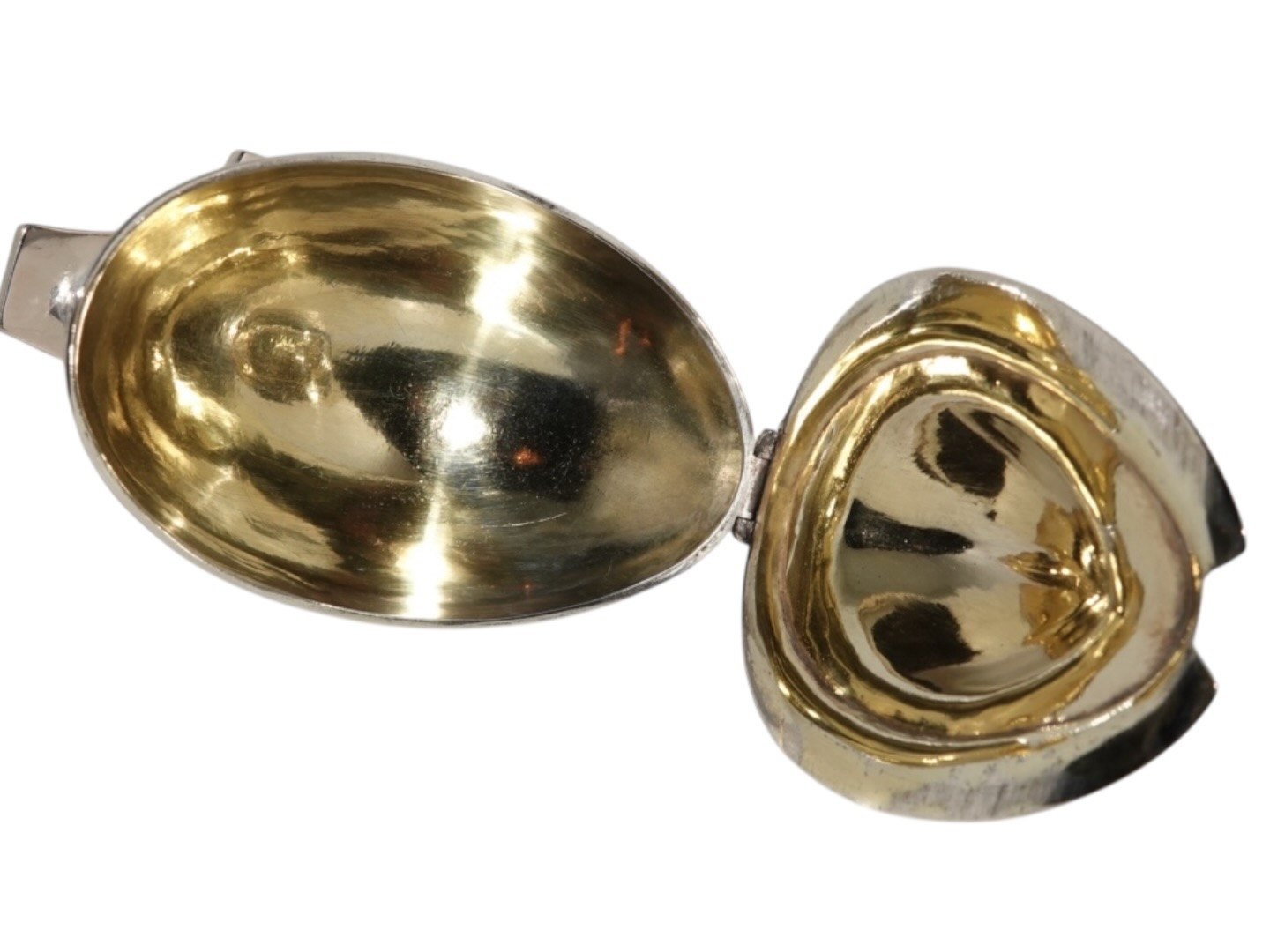 Dansk 1700 tals sølv, marmeladekrukke med indvendig forgyldning.For os ukendte og lidt utydelige sølvstempler.