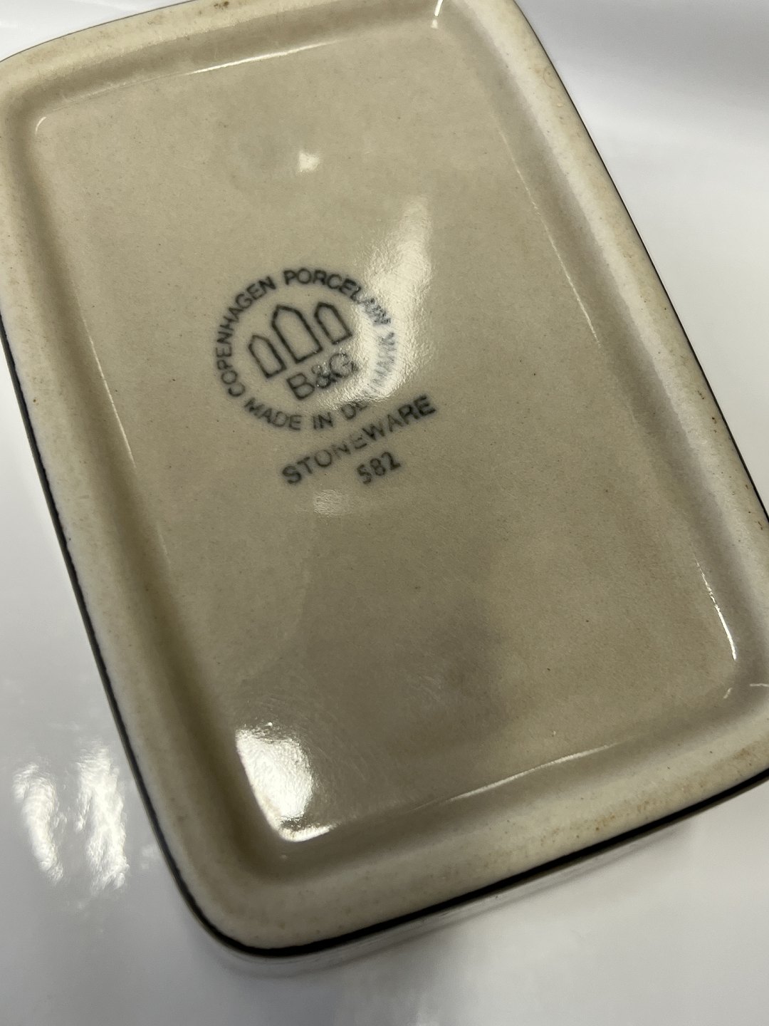 Bing & Grøndahl Stentøjsstel, Peru, Smørboks uden låg.Længde 14 cm.