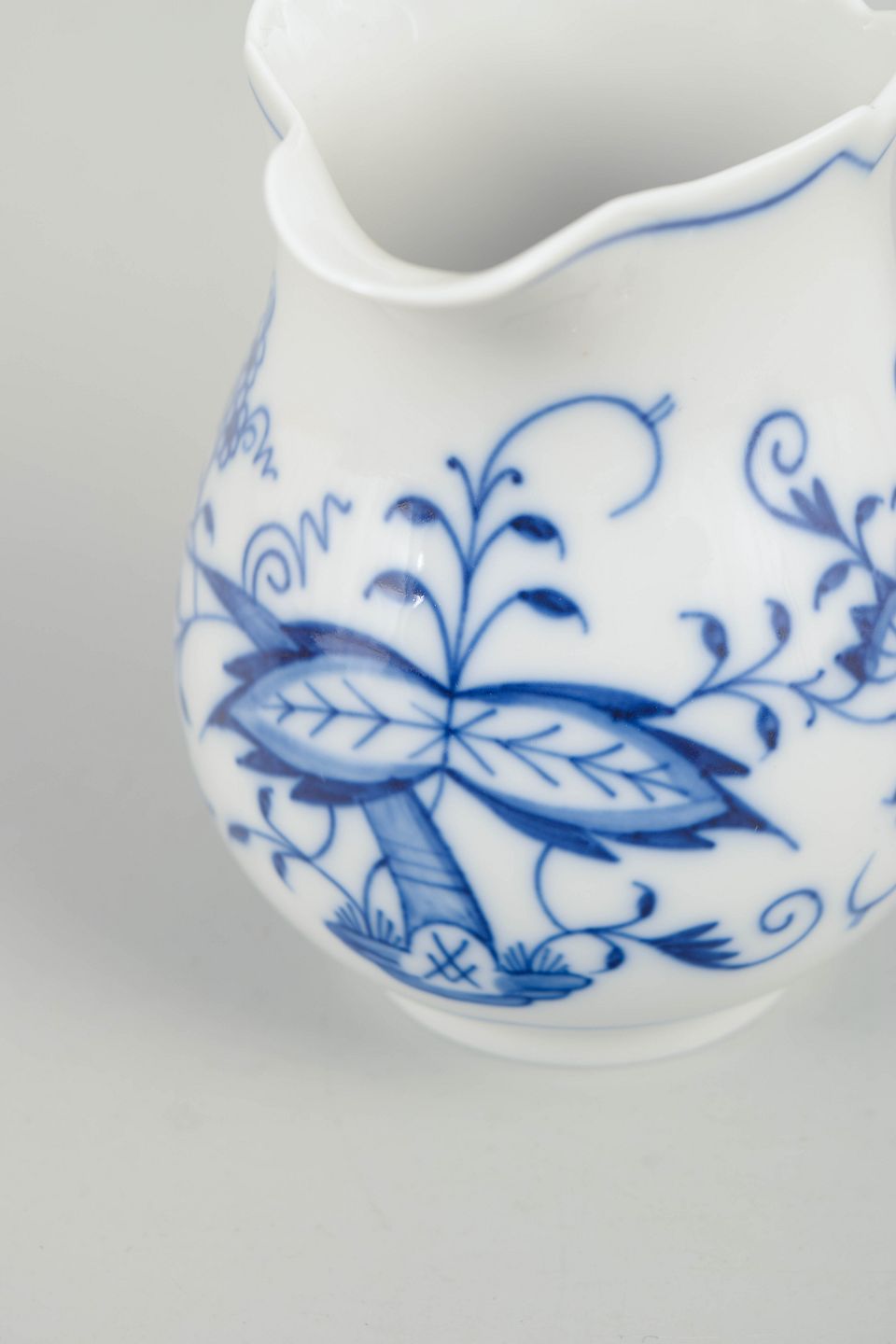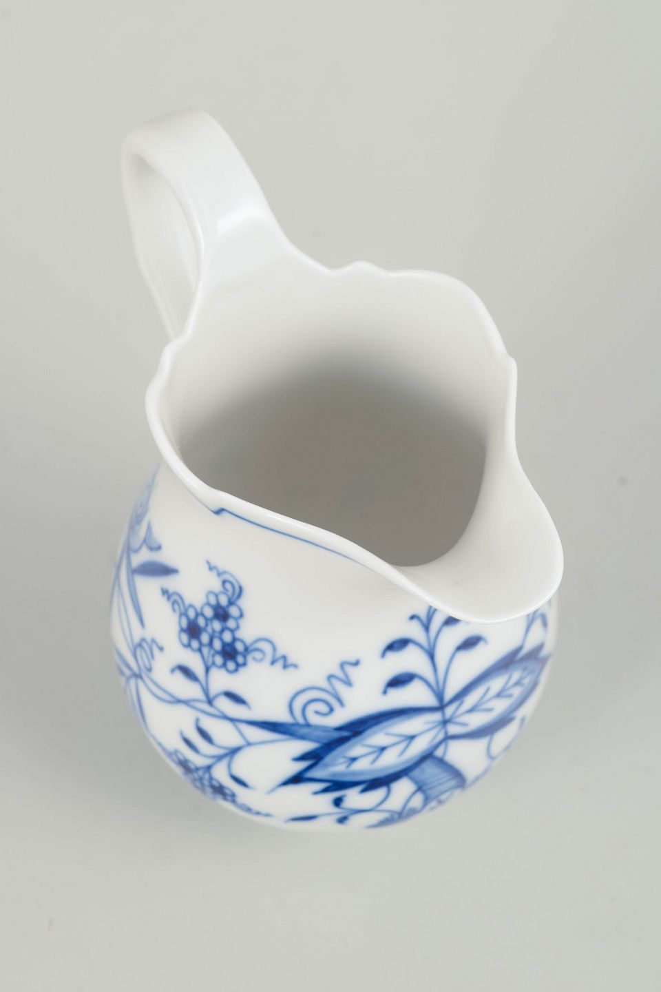 Meissens Blå Løg er et af de mest ikoniske europæiske porcelænsmønstre og kendt for sin klare underglasurblå dekoration og høje forarbejdningskvalitet. Flødekander indgik som faste dele af kaffe- og teservicer og bidrog til et harmonisk og elegant bordudtryk.