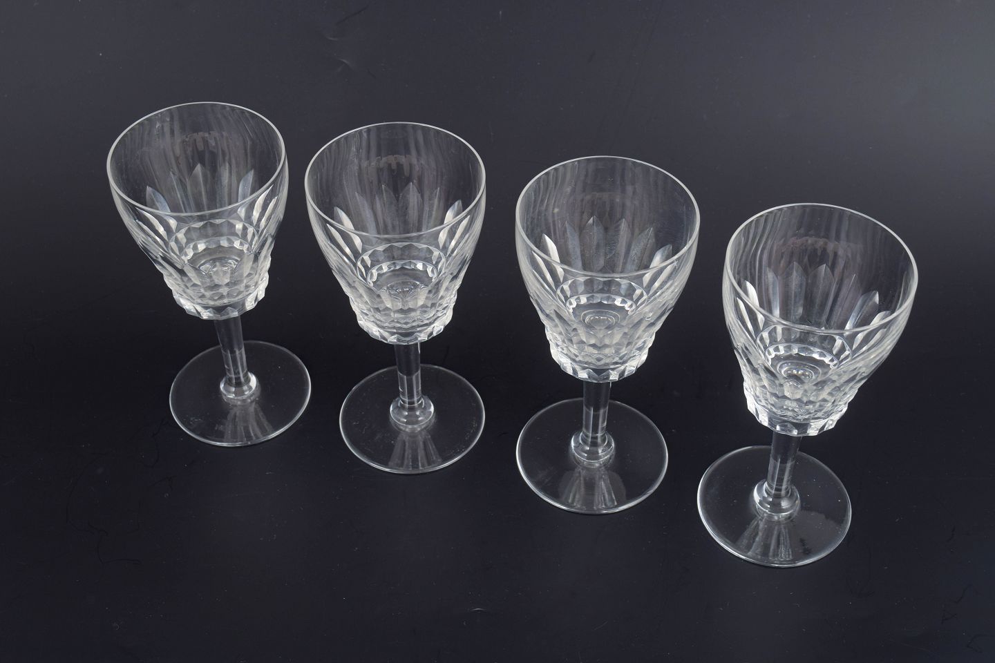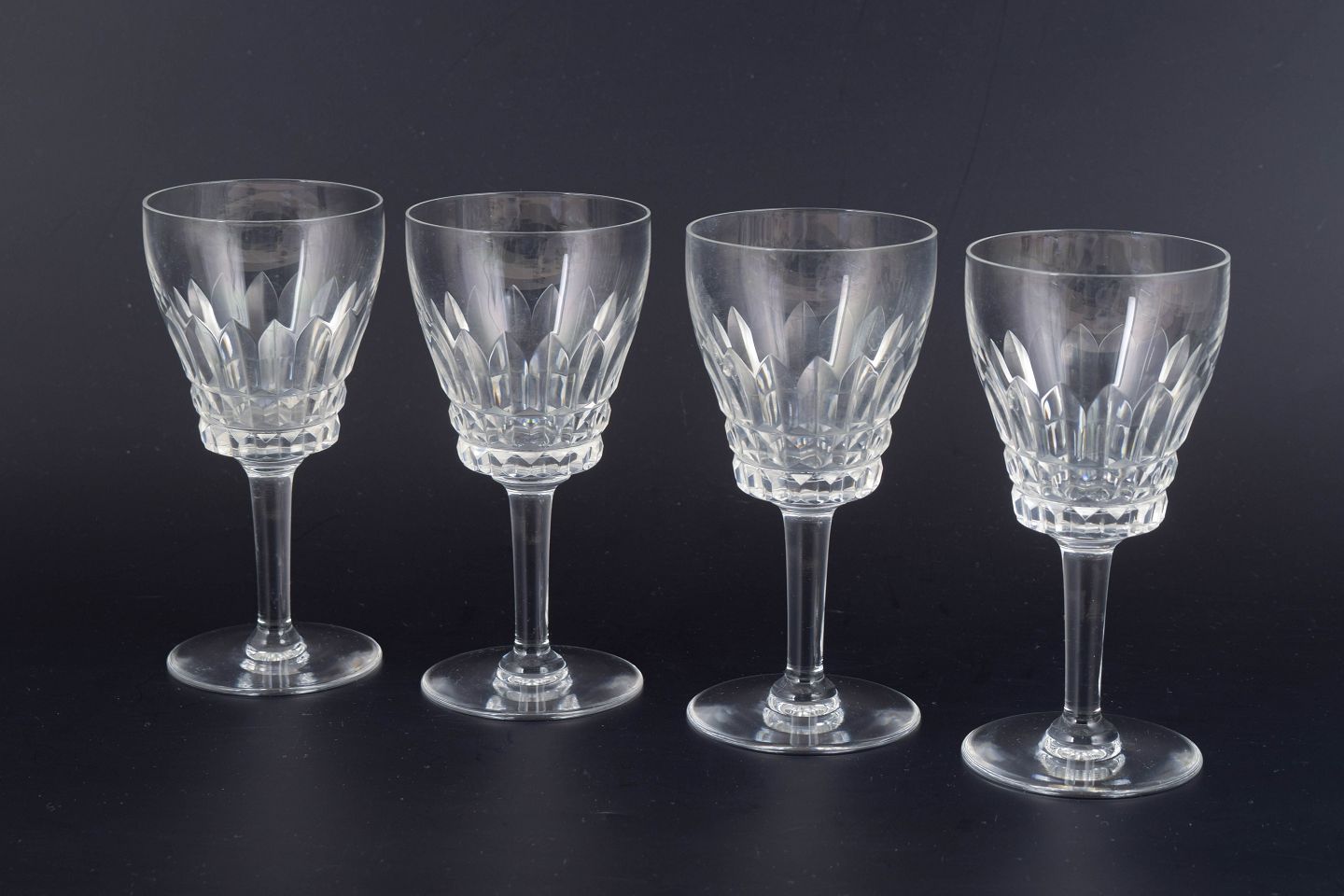 Fransk krystal, sæt på fire hvidvinsglas.Beschreibung: