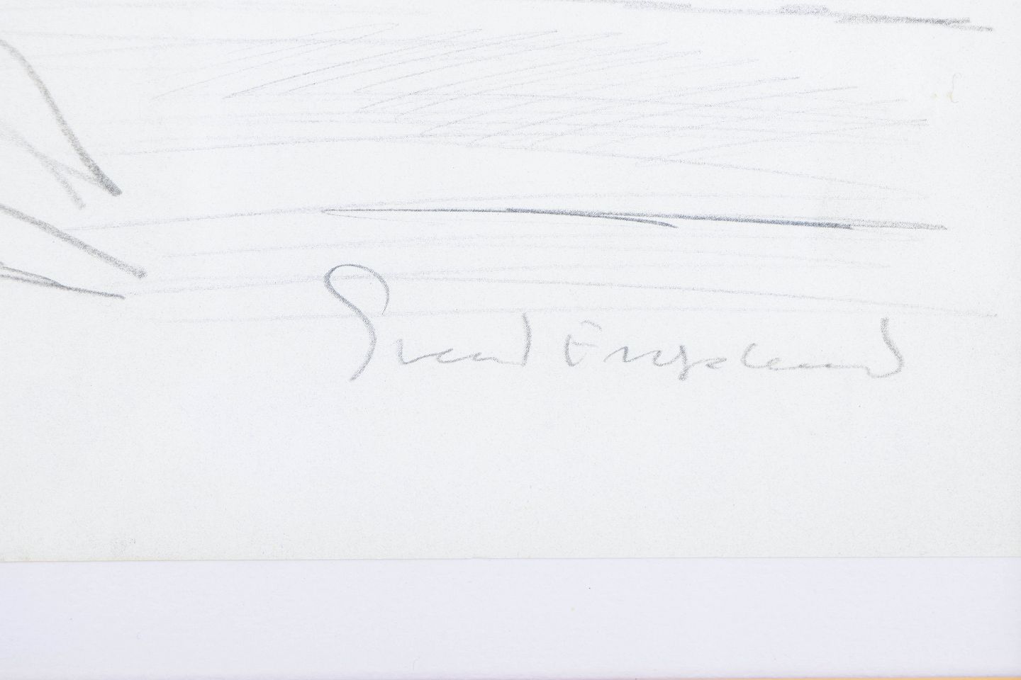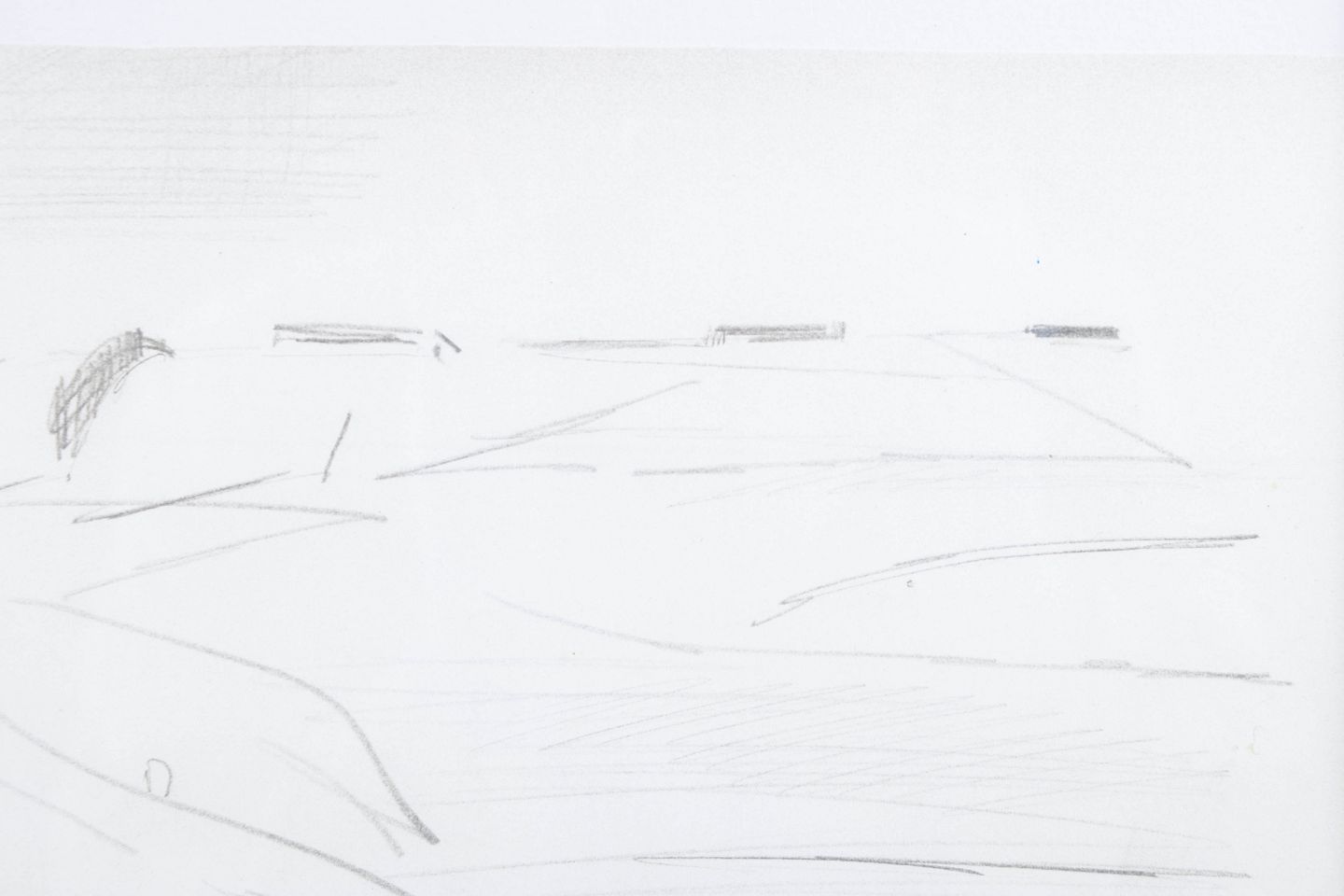 Svend Engelund, tegning, dansk billedkunstner.Dansk landskabsmotiv udført som blyantstegning med let abstraheret komposition og rolige, horisontale linjer.