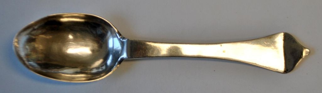 Christian Vilhelm Schlegel (1719–17??), Fredericia, Dänemark. Rokoko-Löffel aus Silber in Rattenschwanzform. Mit Rokoko-Verzierungen und -Gravuren. Gestempelt. Länge: 19,5 cm. Gewicht: 40 Gramm.Bestellnummer: 28851