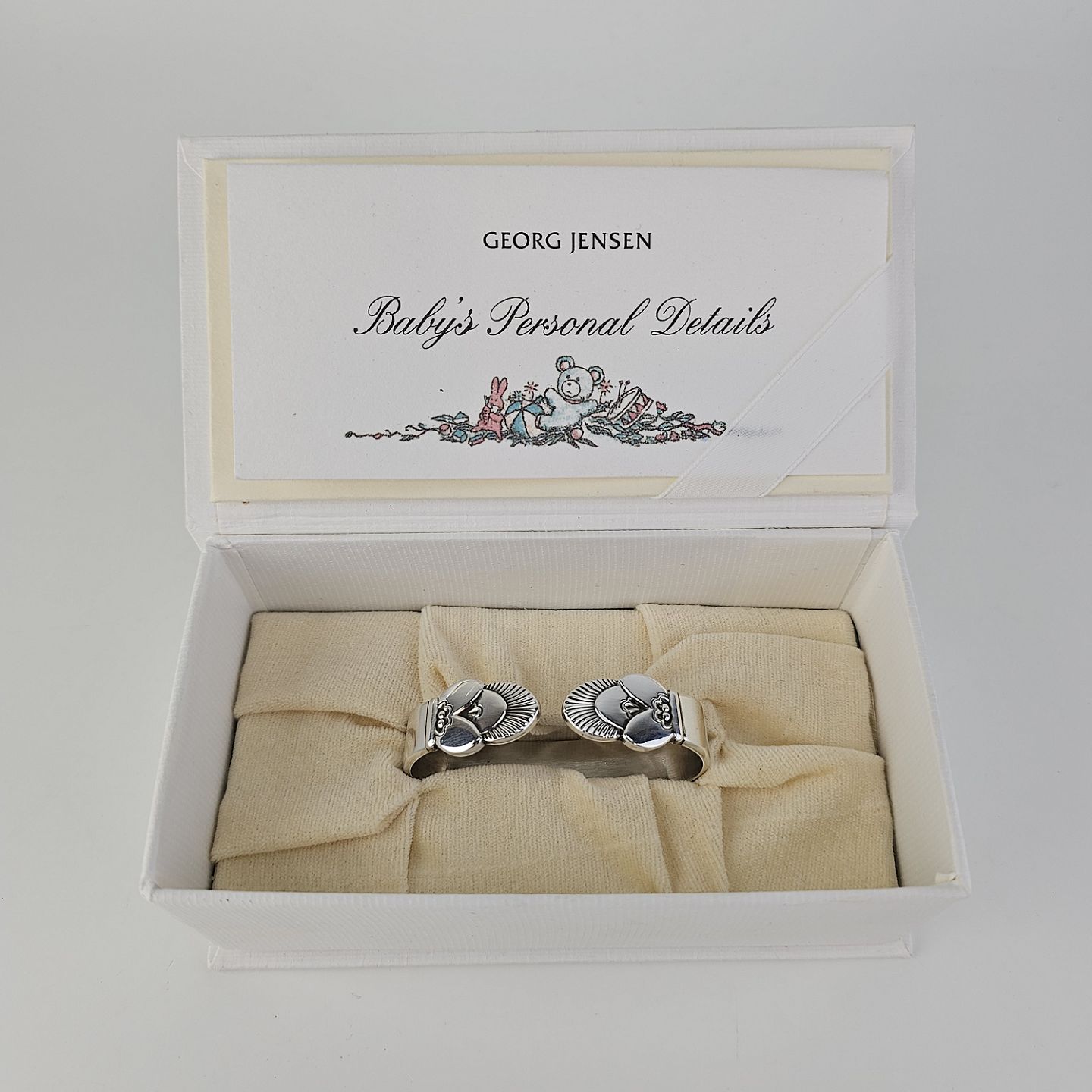 Servietring med Kaktus mønster i sterling sølv med tilhørende æske og kort, Baby's Personal DetailsFormgiver Gundorph Albertus