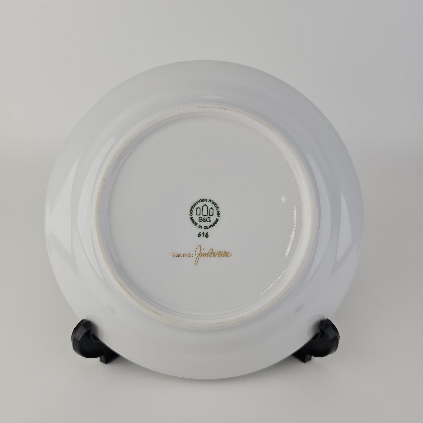 Kagetallerkener i blåmalet porcelæn dekoreret med motiver af danske slotte og guldkant Originaltegninger af Jim Arvesen