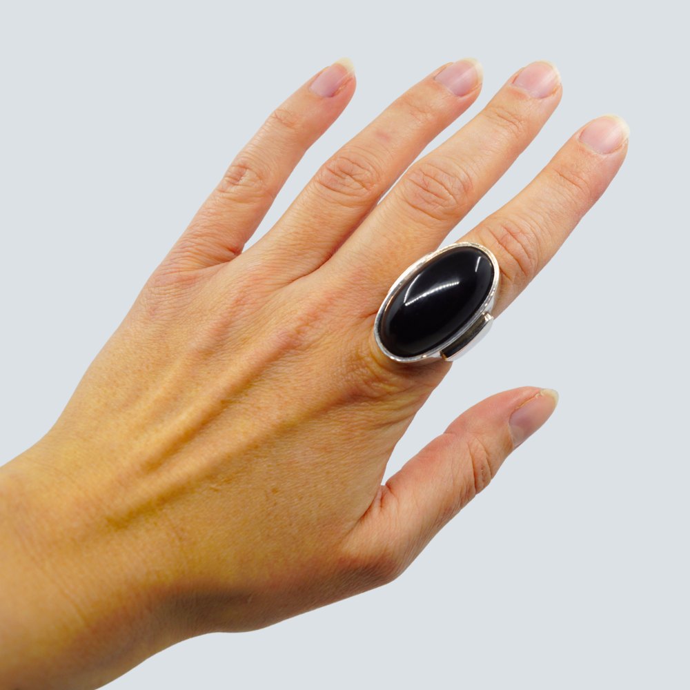 Georg Jensen; Ring af sterling sølv prydet med stor oval onyx.Ring str. 53. L. 3,2 cm.