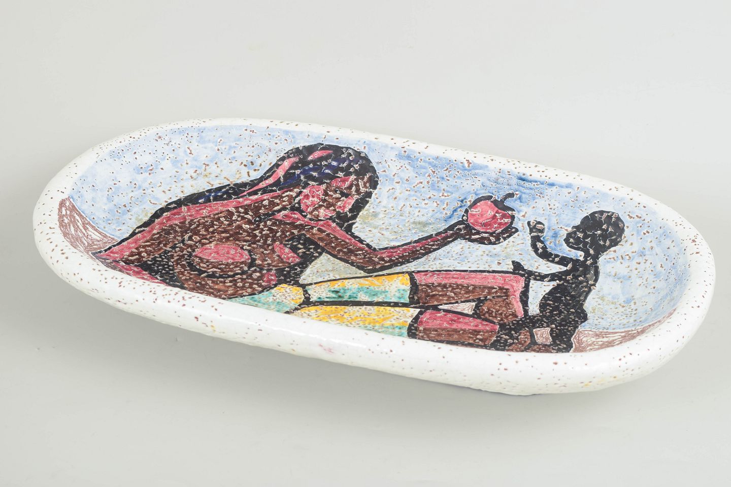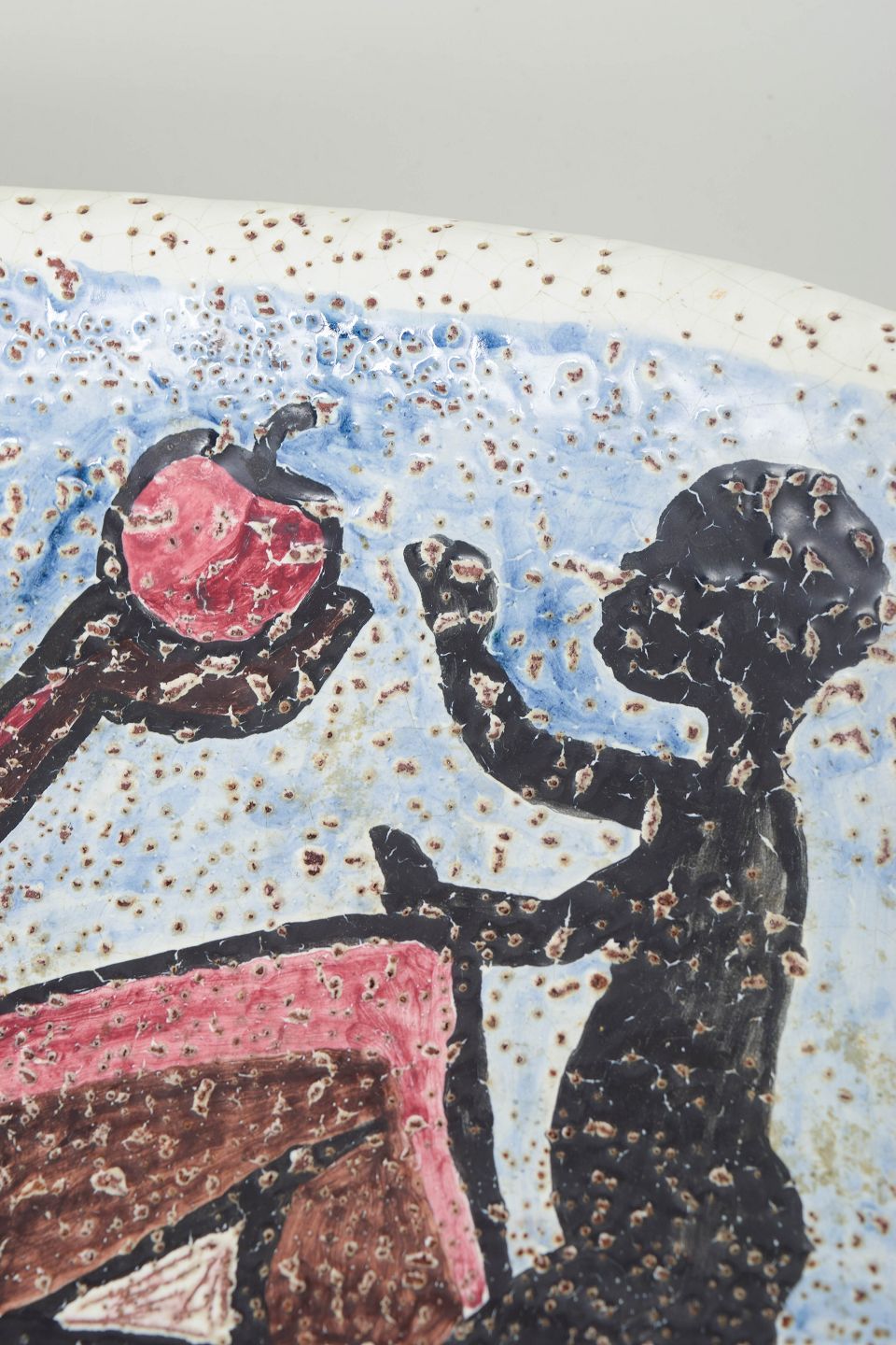 Erik Pløen (1925–2004) arbejdede med keramiske vægrelieffer og skulpturelle former i midten af det 20. århundrede og var kendt for sit personlige billedsprog med figurative motiver og stærke grafiske flader. Hans arbejder kombinerer keramisk teknik med en næsten malerisk komposition, hvor temaer som menneskelige relationer, moder- og barneskikkelser samt symbolske elementer ofte forekommer. Pløens værker blev typisk udført som unika og større dekorative udsmykninger, hvilket gør hans produktion relativt sjælden på markedet.