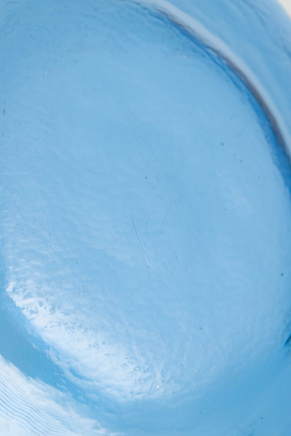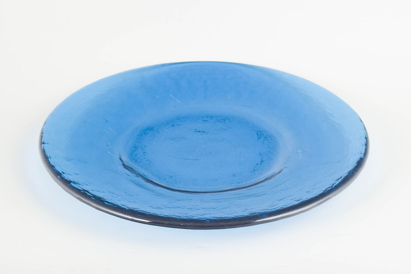 Svensk kunstglas, stort fad.Stort svensk fad i kraftigt blæst kunstglas i blå tone med glat spejl og let ujævn rand, udført i et enkelt og funktionelt formsprog typisk for skandinavisk glasdesign fra midten af det 20. århundrede.