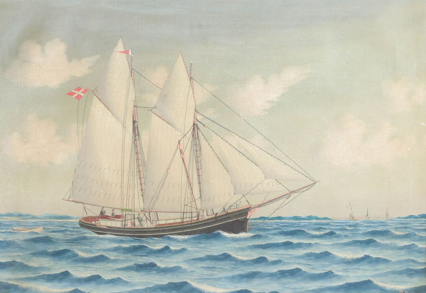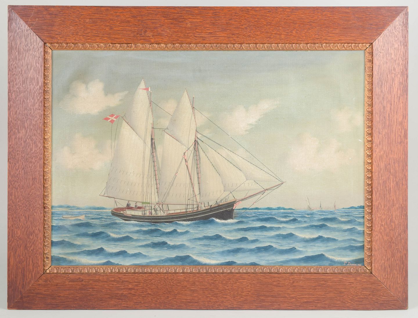C. Damm, skibsmaleri med to-mastet skonnert “Peder” af Svendborg.Beschreibung: