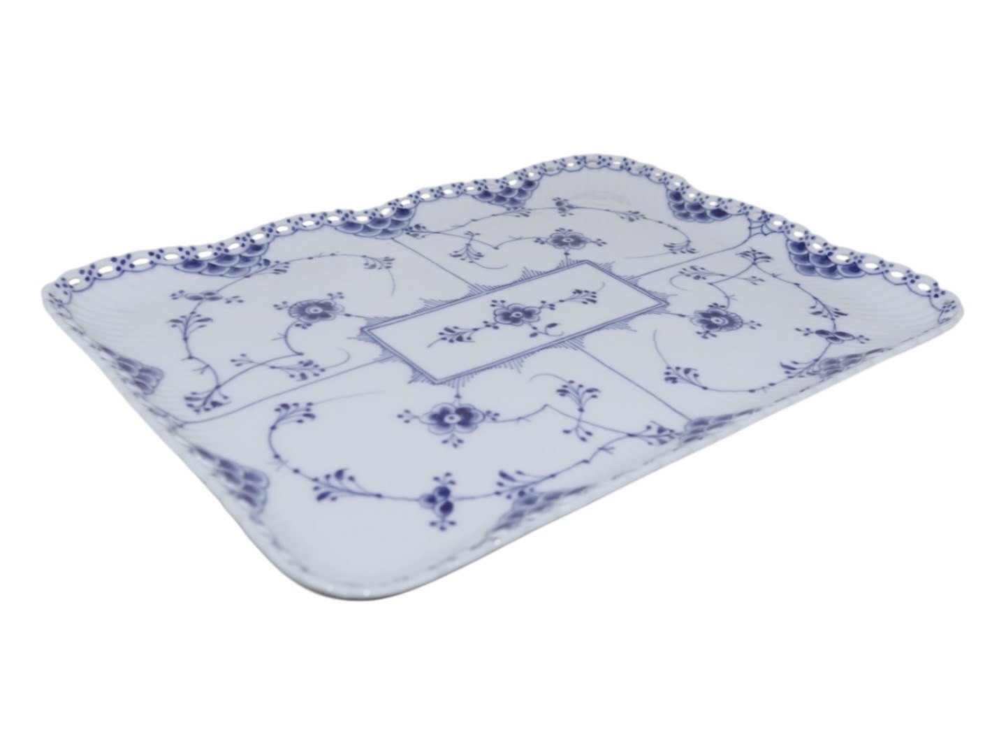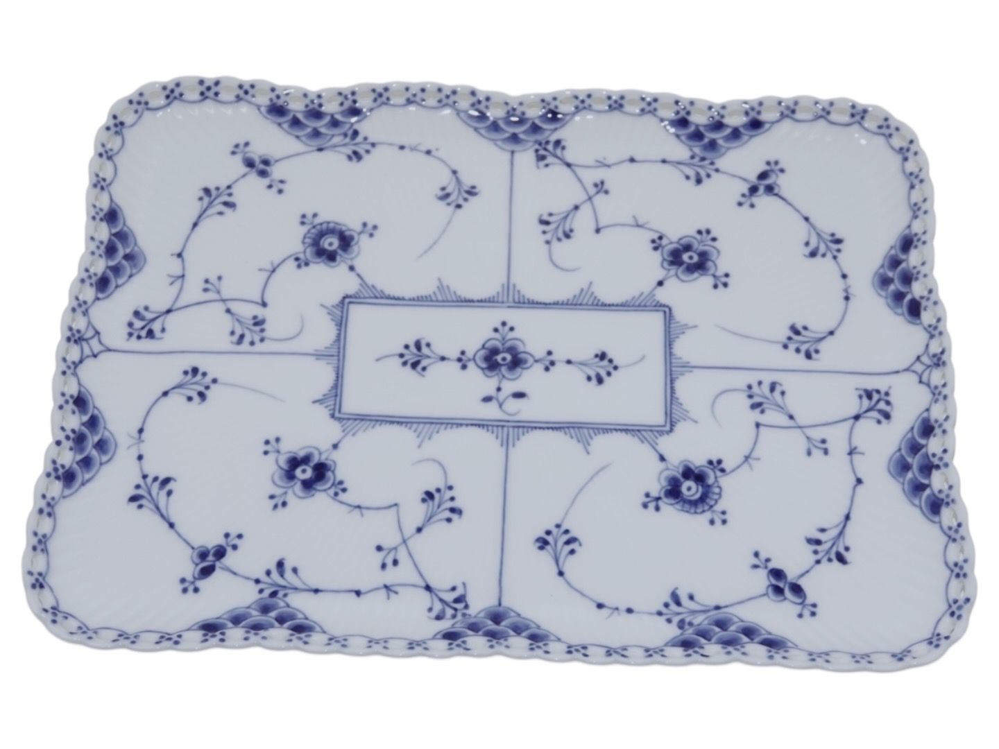 Royal Copenhagen Musselmalet Helblonde, sjælden helflad bakke.Fabriksmærket viser, at denne er produceret mellem 1898 og 1923.