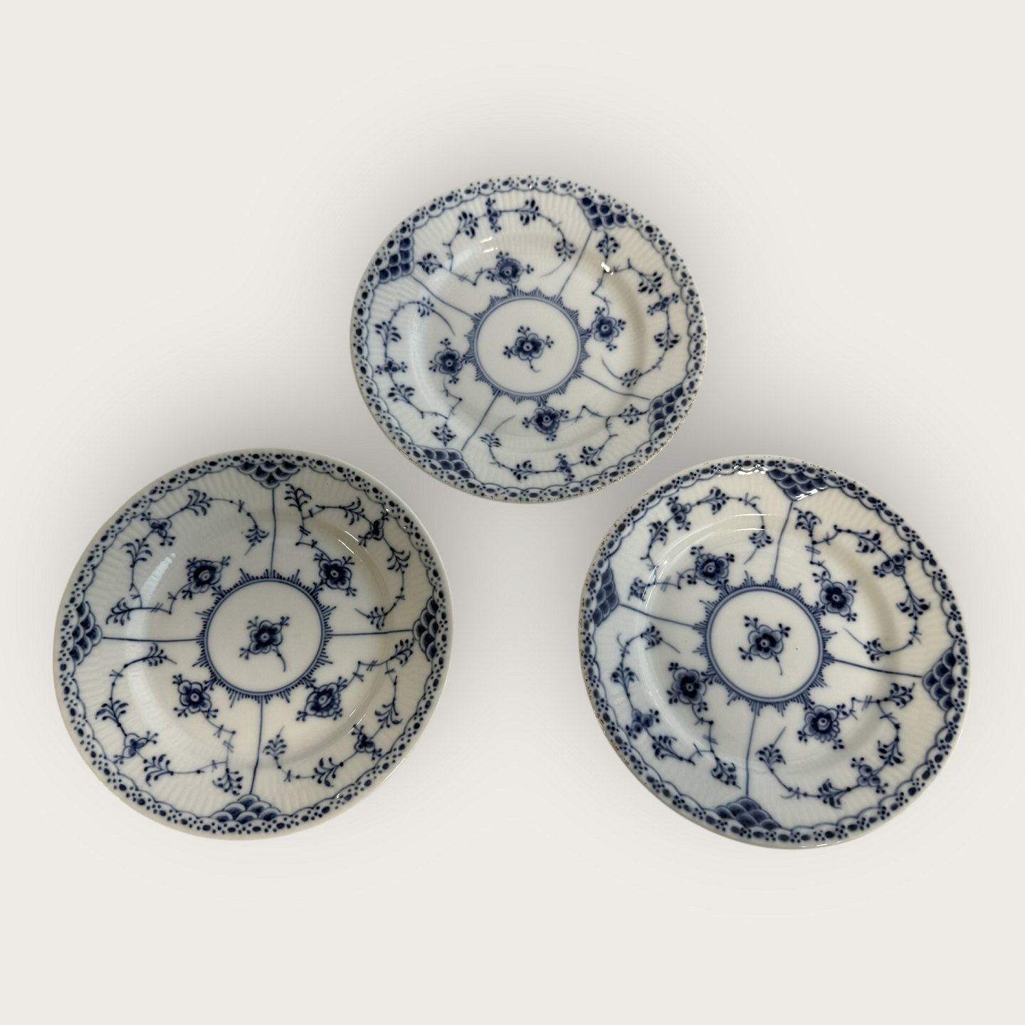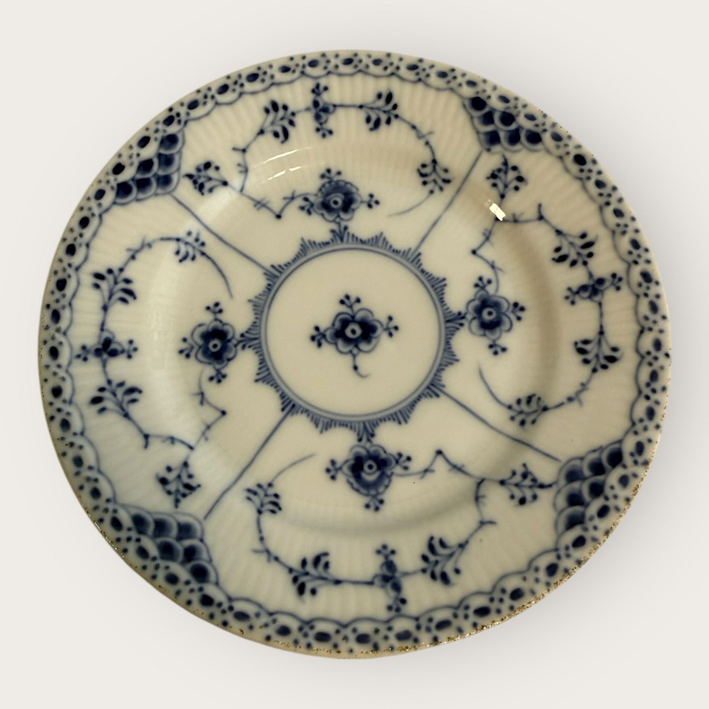 Royal Copenhagen, musselmalet / blau geriffelt, Halbspitze, Kuchenplatte Nr. 1/575, 16 cm Durchmesser, 3. Wahl / Mitarbeiterqualität *Einige schwarze Punkte unter der Glasur am Rand, ansonsten in gutem Zustand*Lager: 3