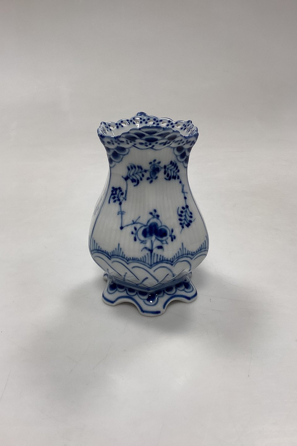 Royal Copenhagen Musselmalet Helblonde Flødekande No. 1140. Måler 12,5 cm / 4,92 in. 1. Sortering med et afslag i kanten, se foto.