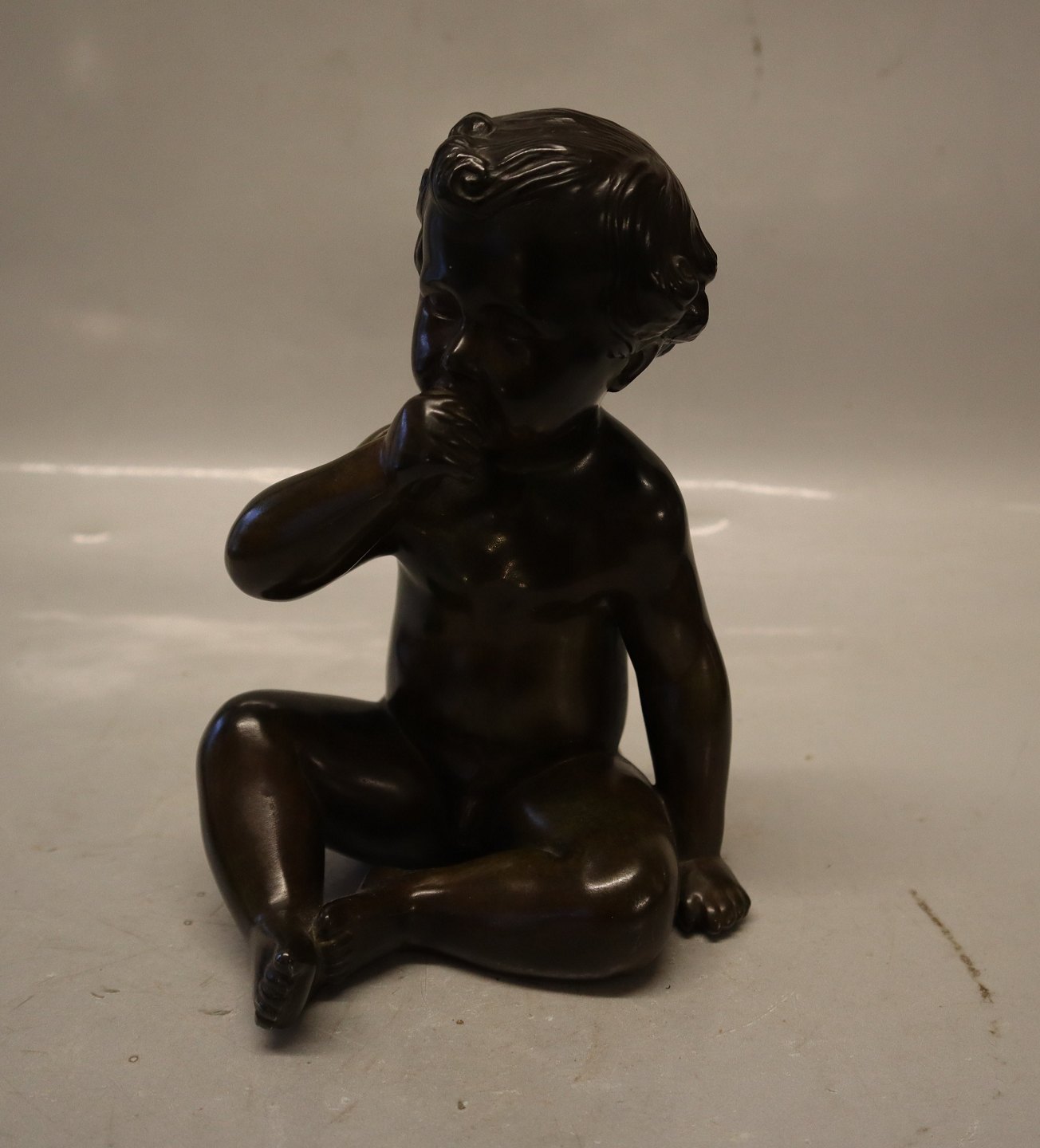 Just A Disko D 2323 Dreng sider og sutter på sin tommelfinger 19.5 cm Bronzeret statuette