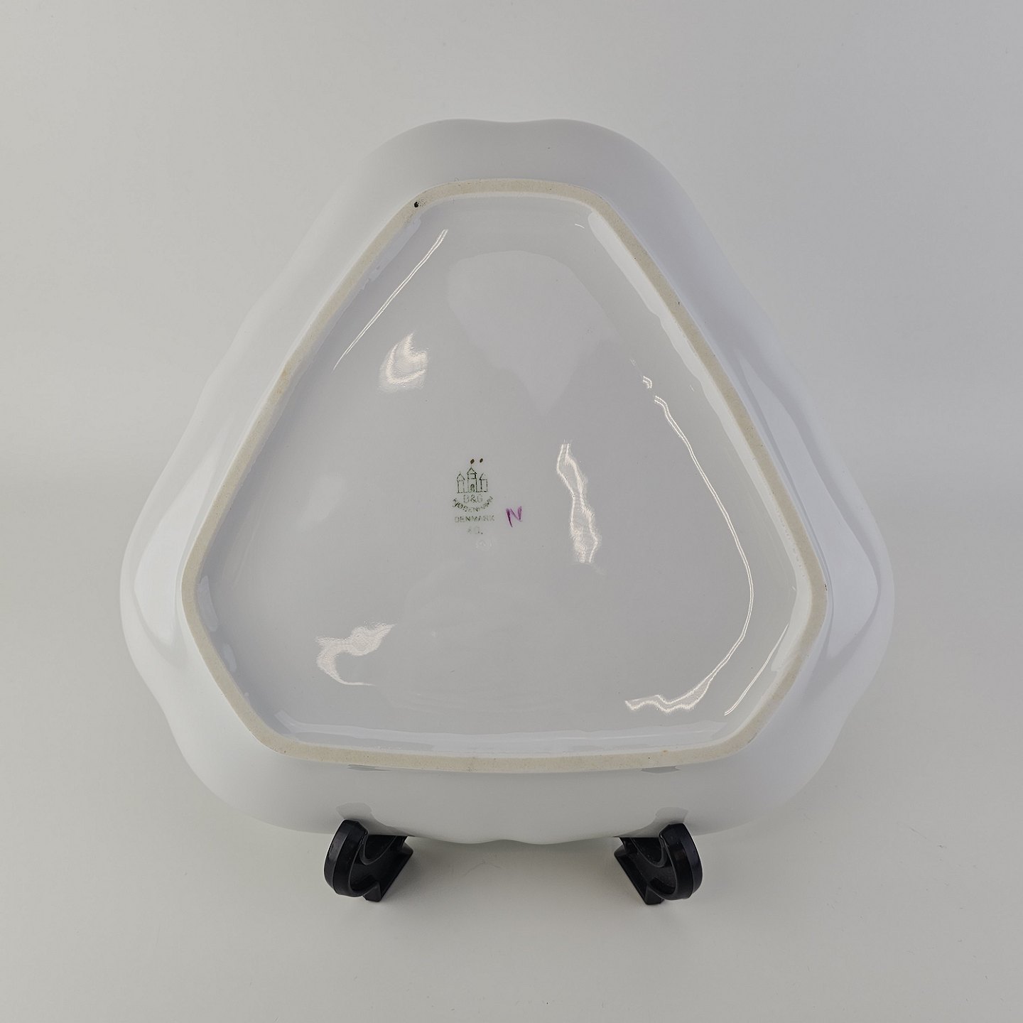 Trekantet fad til salt, peber og sennep i porcelæn fra stellet AntoniusNr. 40