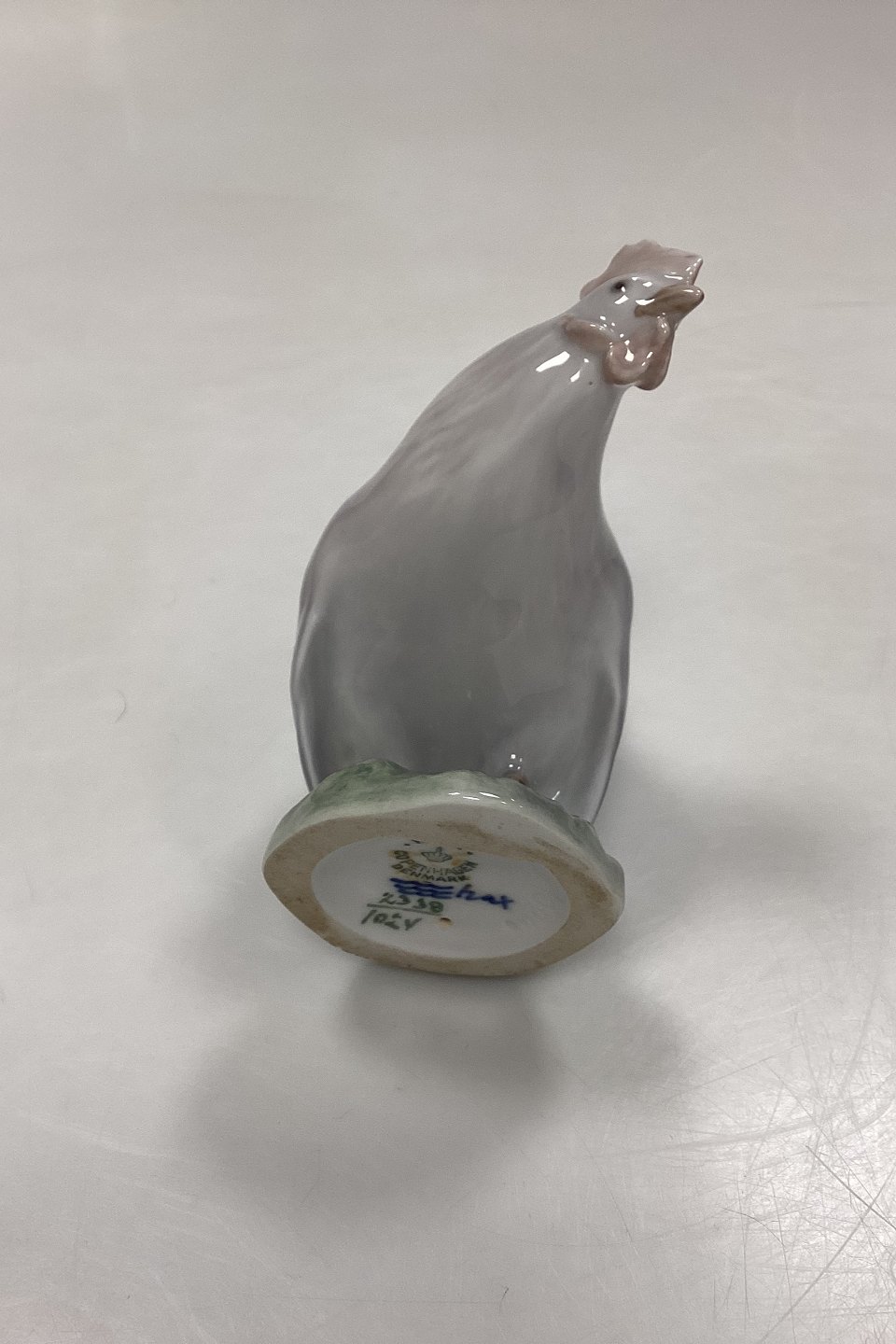 Royal Copenhagen Figur Høne No. 1024. Designet af Chr. Thomsen. Farven er lidt bleg i kammen og fjerdragt.Måler 14 cm x 12 cm / 5.51 in. x 4.72 in.