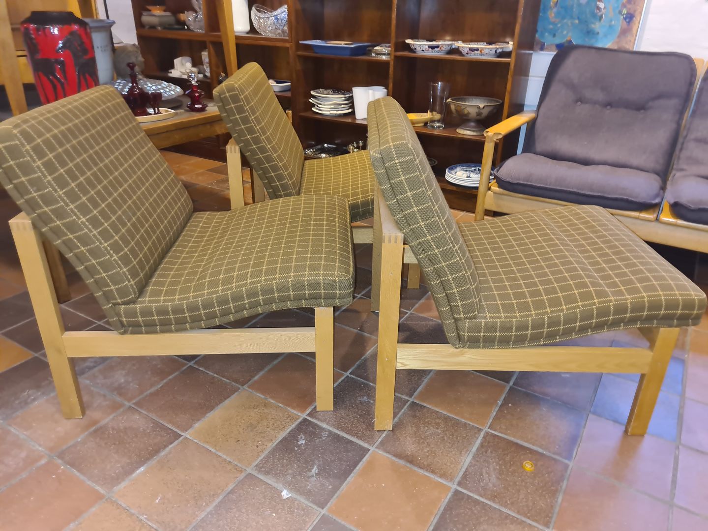 Sæt af 3 Moduline lounge stole i eg. Kr. 4500,- samlet.
