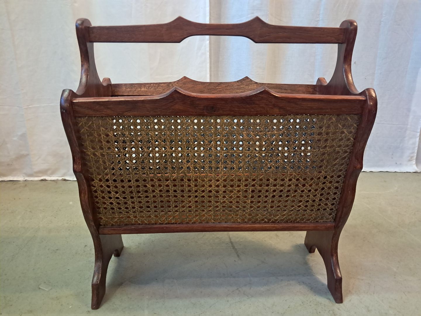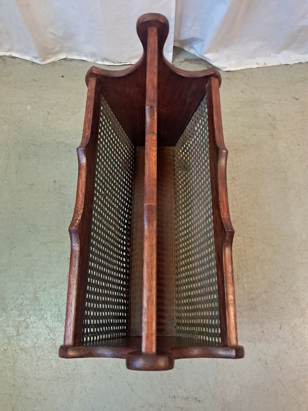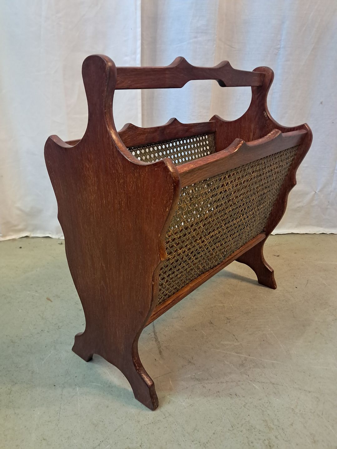 Avisholder i bejdset massivt egetræ med rørflet, fra 1990erne.Den har brugsspor.