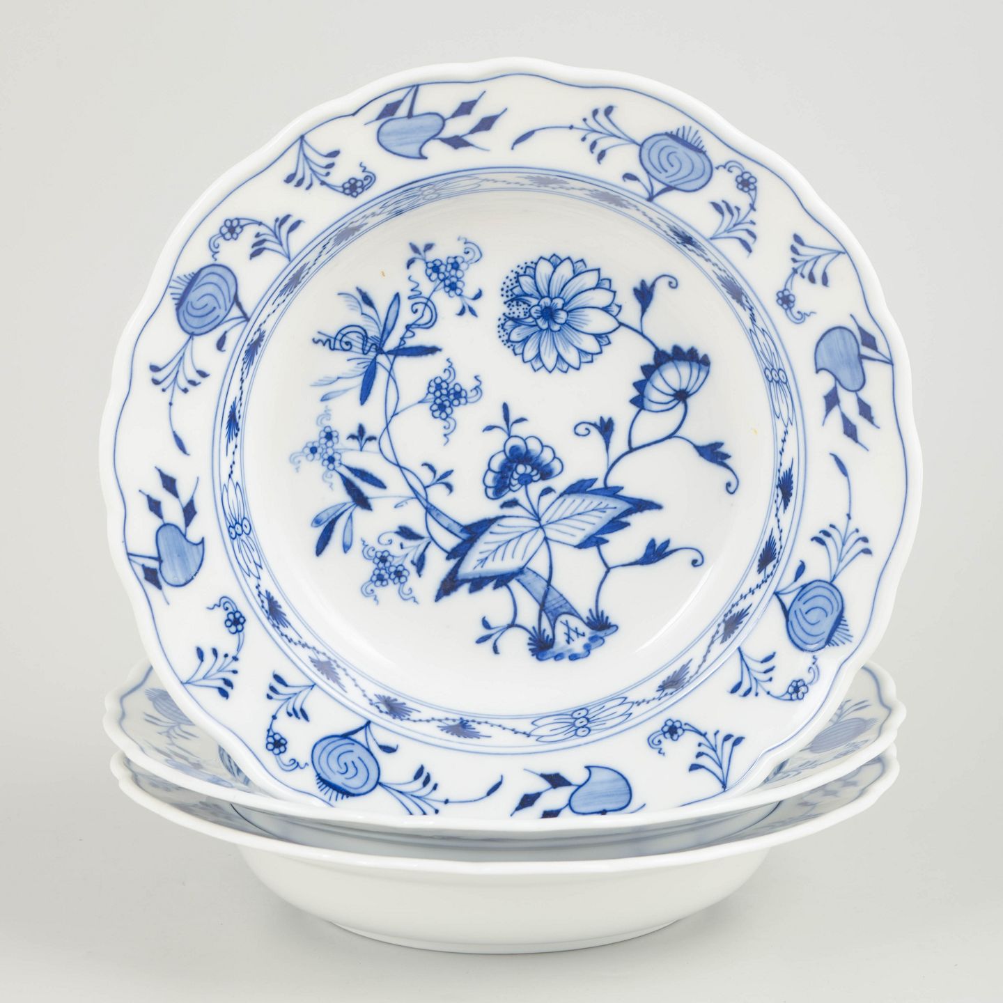 Meissen, løgmønster, dybe tallerkener, sæt på 3.Beschreibung: