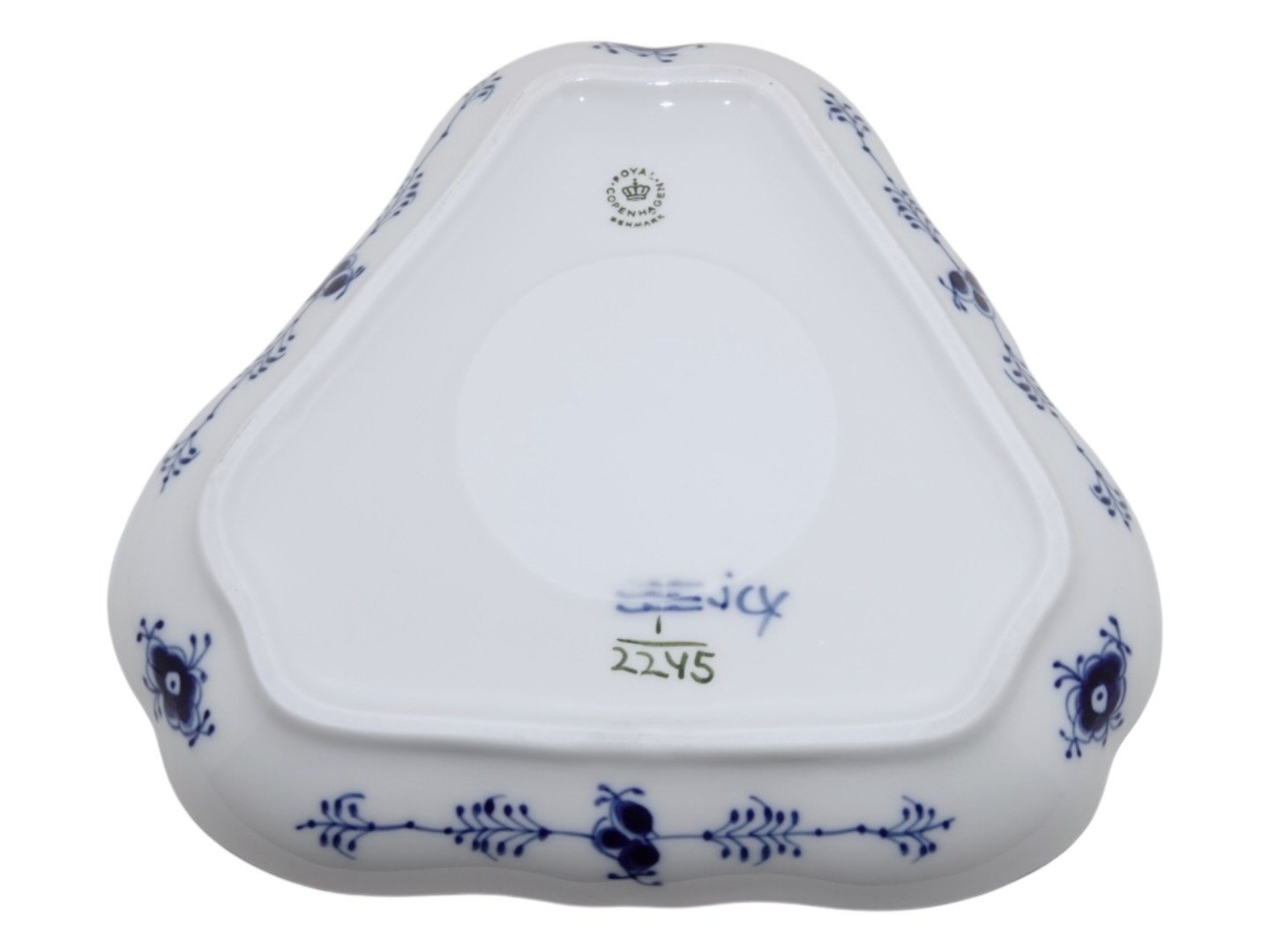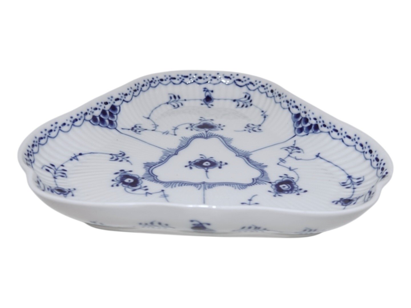 Royal Copenhagen Musselmalet Halvblonde, trekantet fad.Af fabriksmærket kan det udledes, at denne er produceret