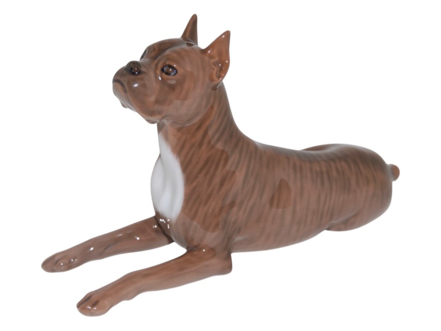 Royal Copenhagen hunde figur, liggende tysk boxer.Dekorationsnummer 3635.