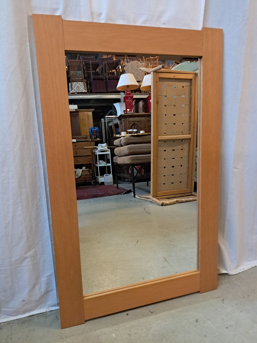 Spejl i fineret egetræ, fra 1970erne.Det har brugsspor.