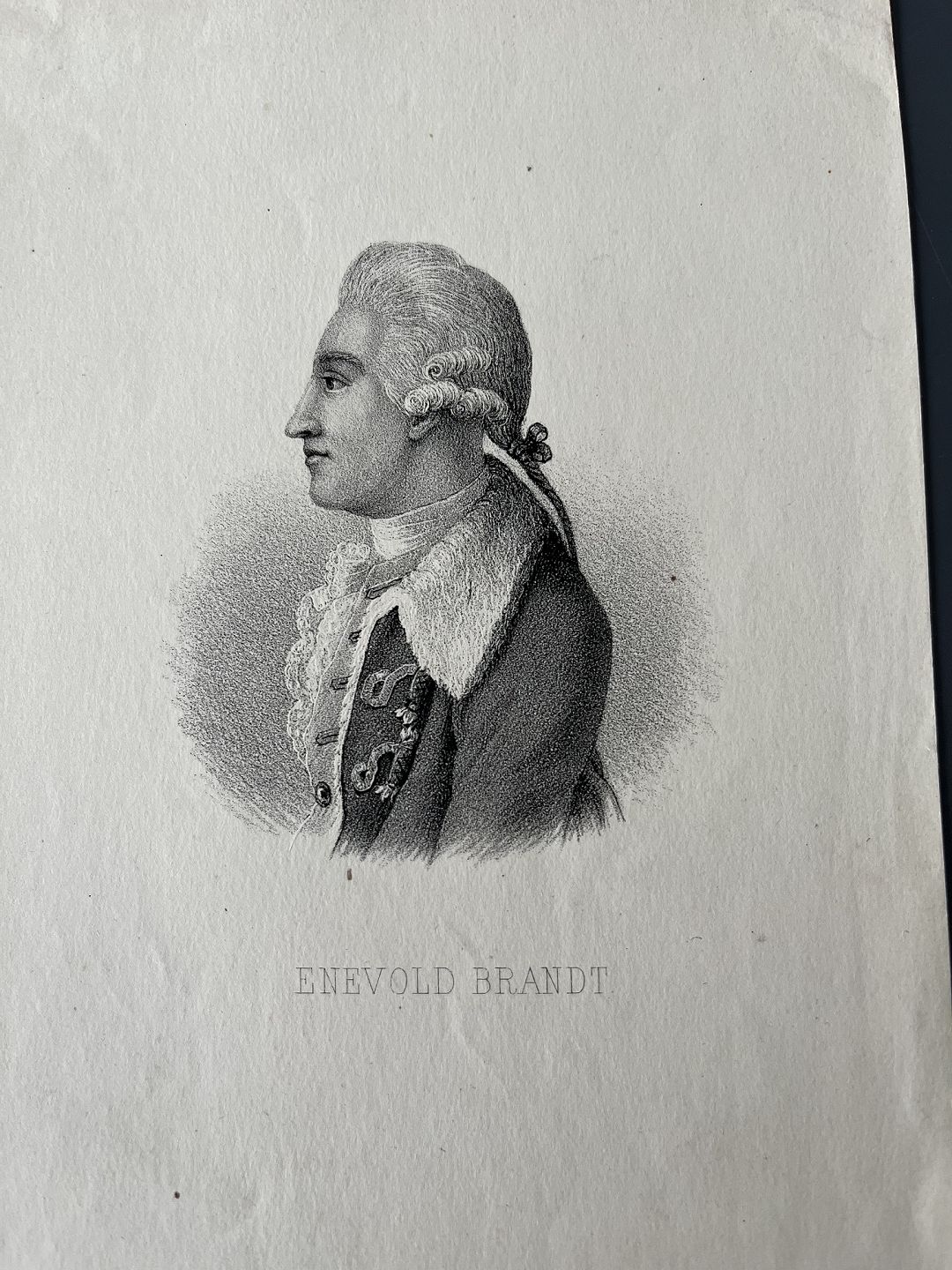 Litografi - Portræt af Hofmanden Lensgreve Enevold Brandt.