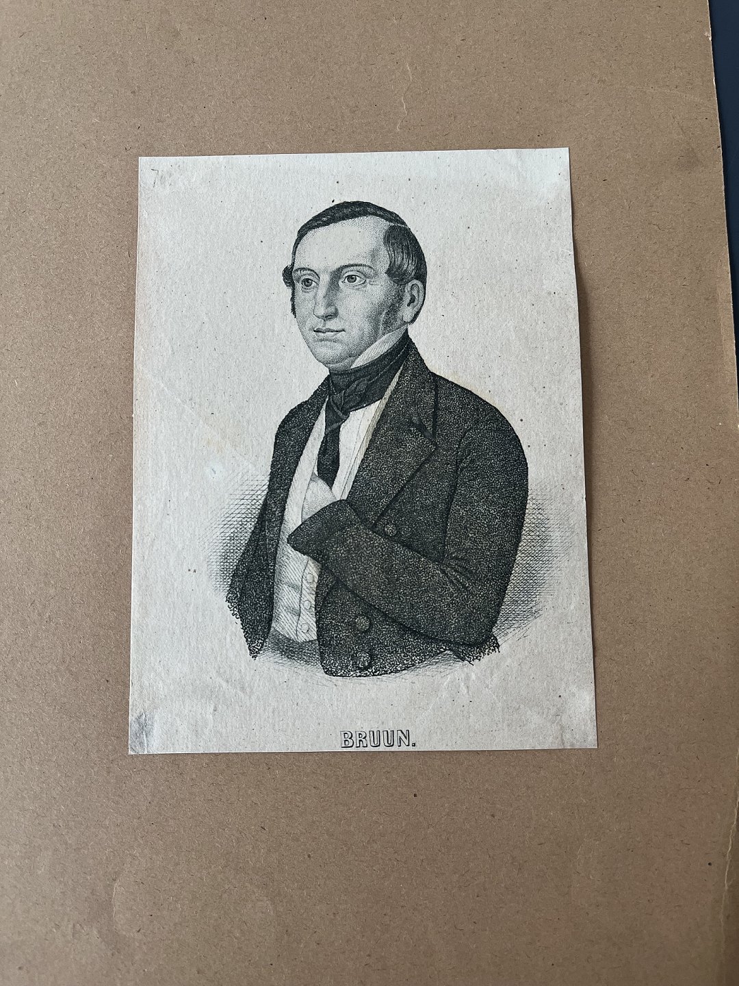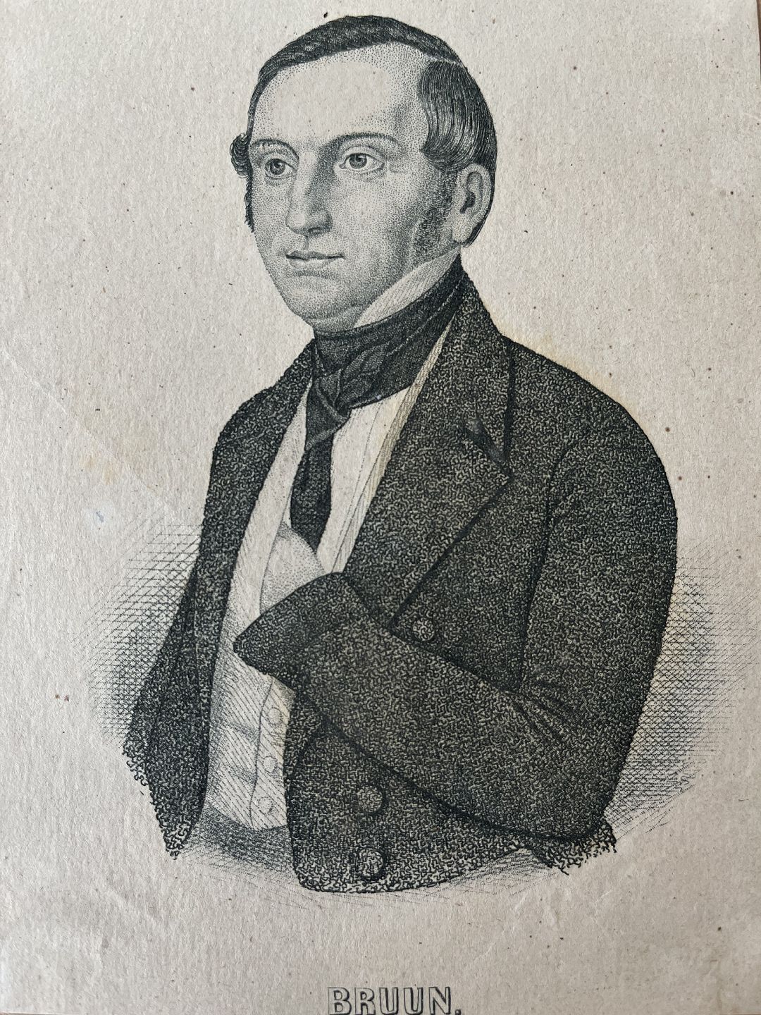 Træsnit af Henrik Olrik - Portræt af Landstingsmand Peter Daniel Bruun.
