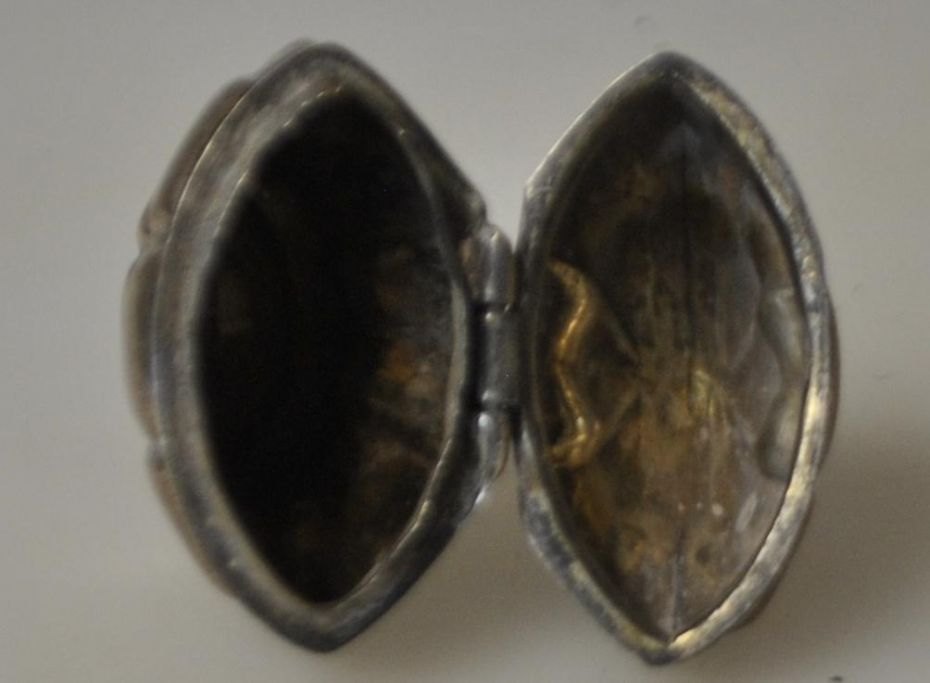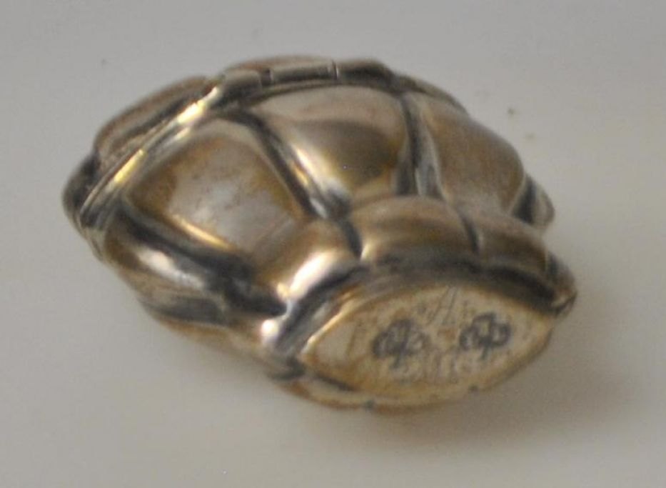 Dänischer Silberschmied (18. Jahrhundert): Rokoko-Geruchsdose aus Silber mit Krone. Innen vergoldet. Mit Gravur: am Boden: AM. Gestempelt: LTL im Kleeblatt. Höhe: 6,6 cm.Bestellnummer: 28879