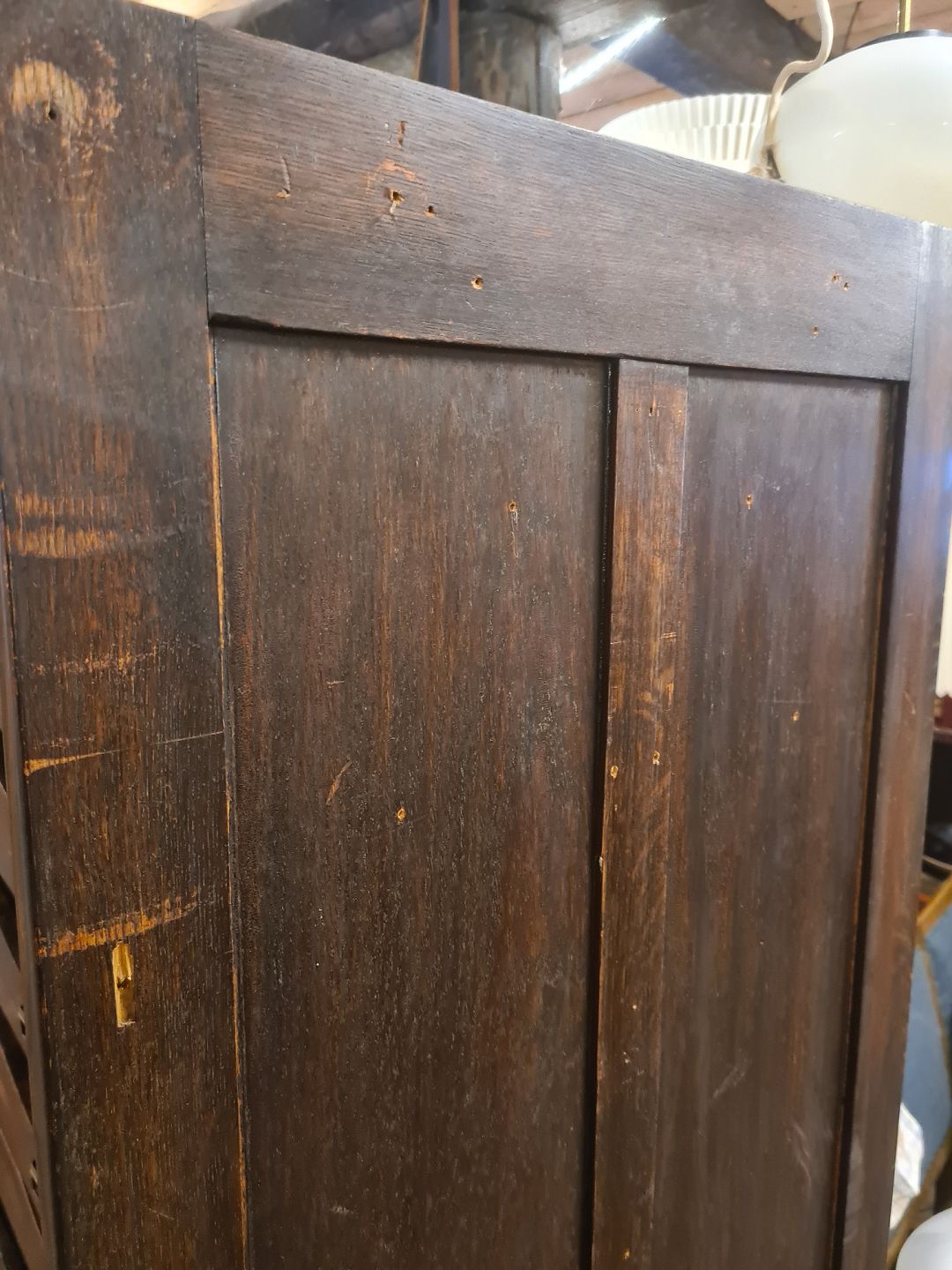 Ældre arkivskab m. jalousilåge, udført i mørk bejdset egetræ.Fremstillet i Danmark ca. år 1920.