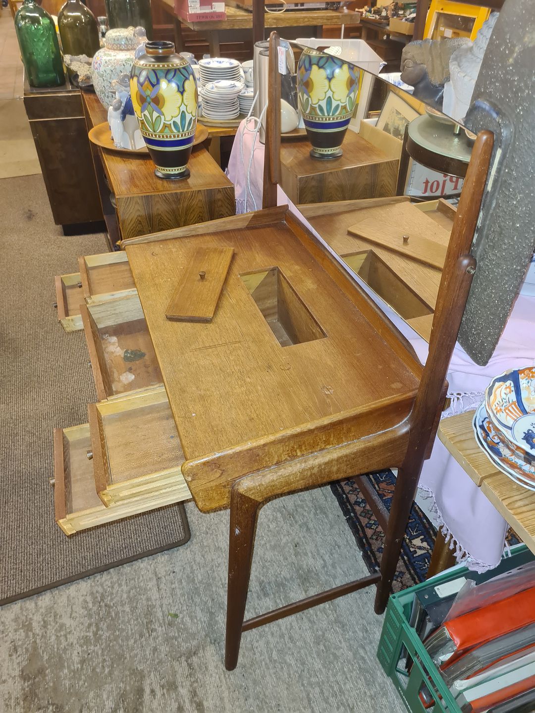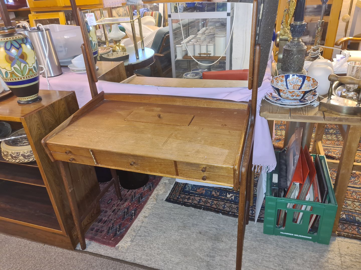 Svend Aage Madsen sminkebord i teak m. spejl med vippe funktion. Fremstillet ca. 1950'erne.