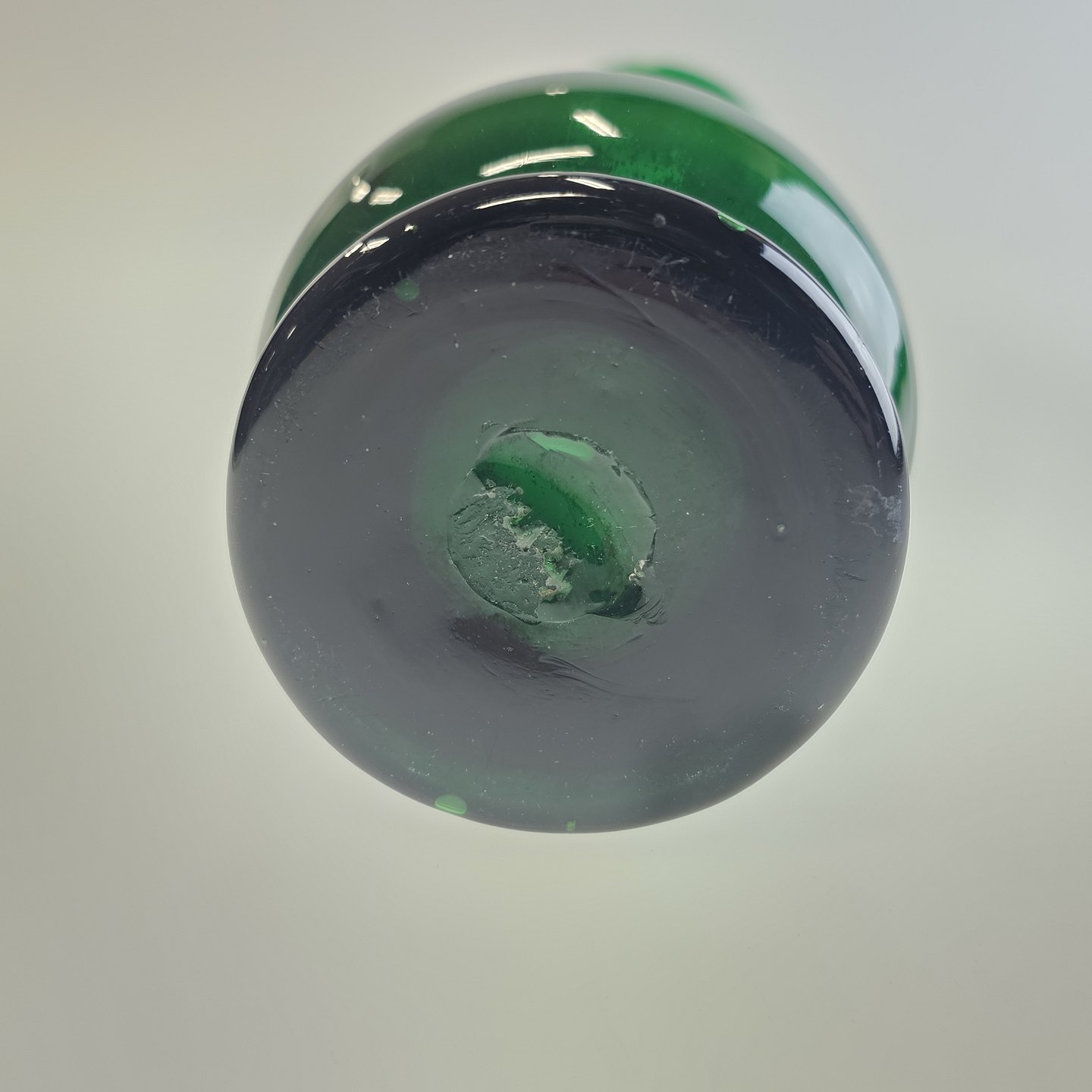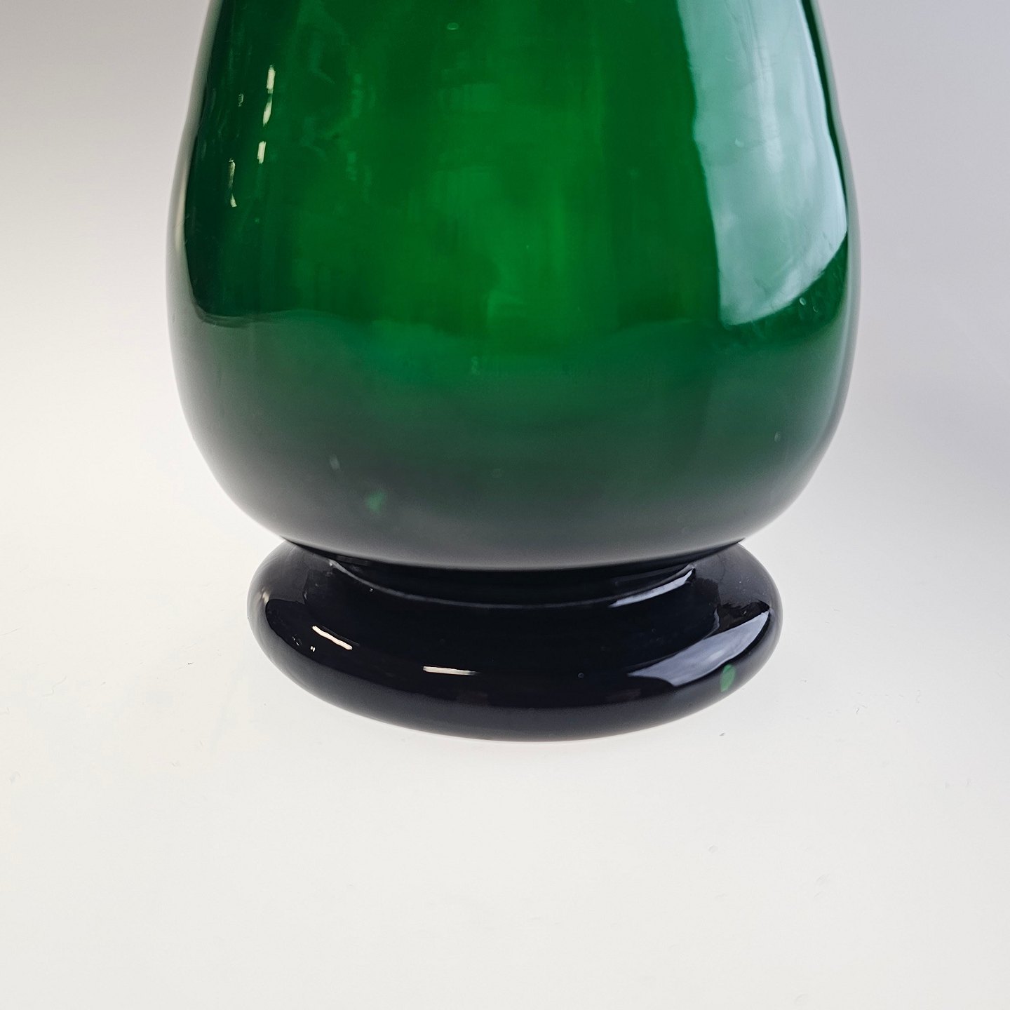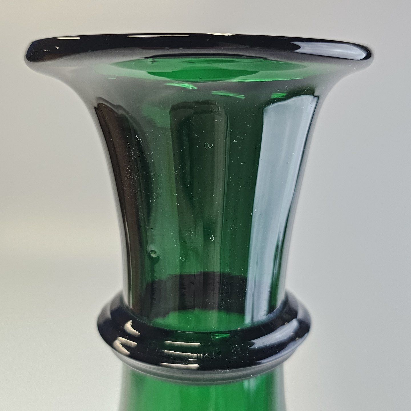 Håndblæst balusterformet hyacintvase i grønt glasProducent Holmegaard Glasværk