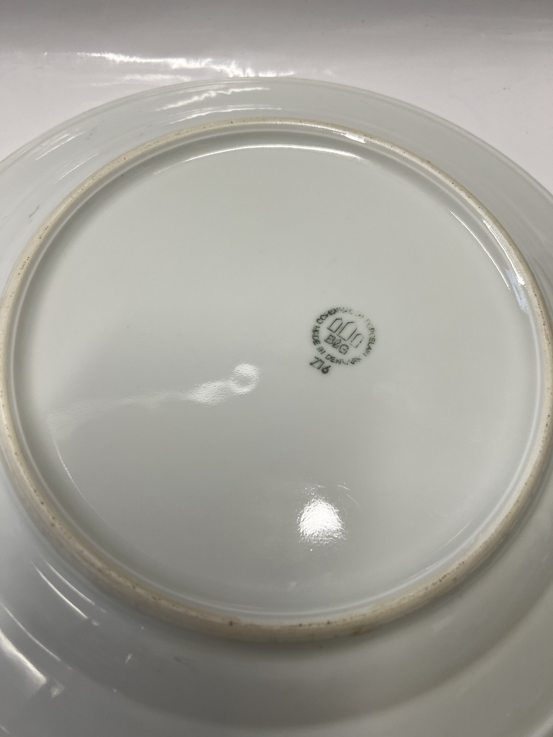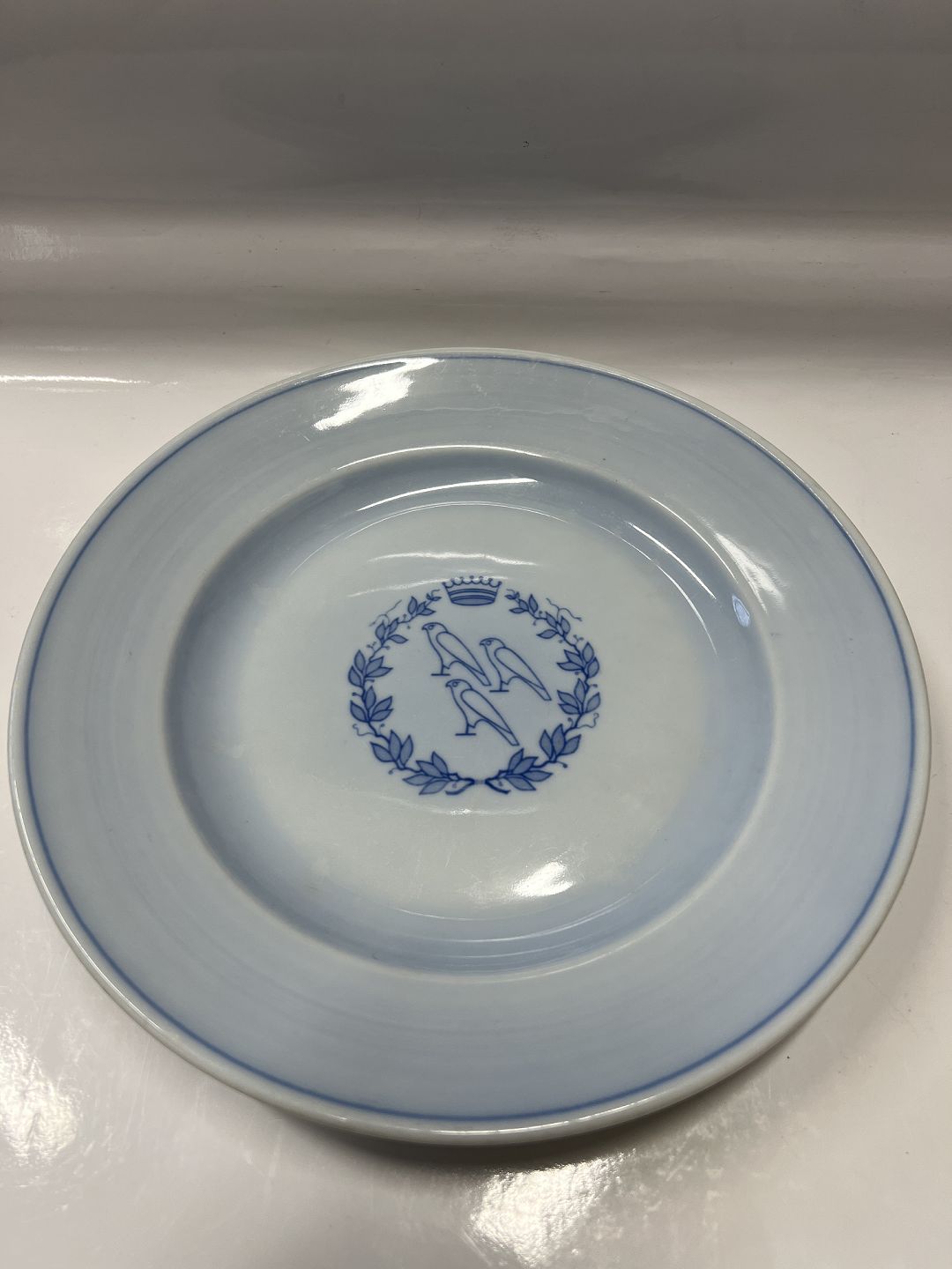 Bing & Grøndahl, Middags tallerkener med tidligt logo fra Hotel 3 Falke på Frederiksberg.Dekorationsnummer 716.